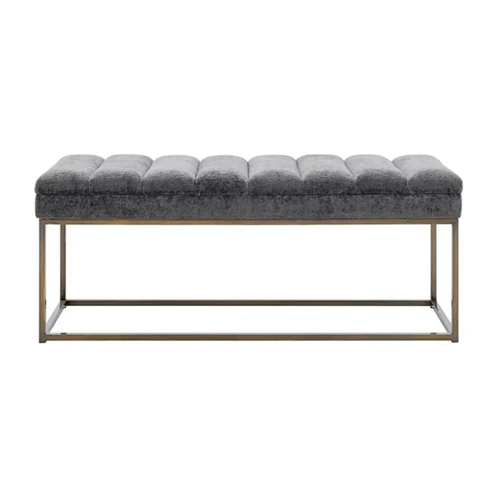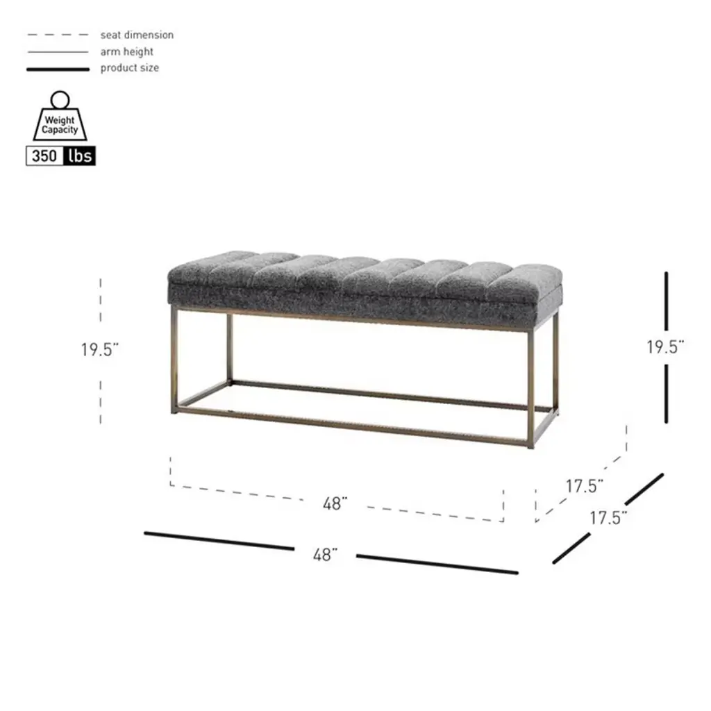 Elevate your space with Darius bench. It’s able to transition to nearly any room in the home, wherever and whenever extra seating is needed. Easy assembly. Darius measures 48 inches wide and 17.5 inches deep, and it’s available in different texture and color options. The steel base is painted a color called Brushed Gold.