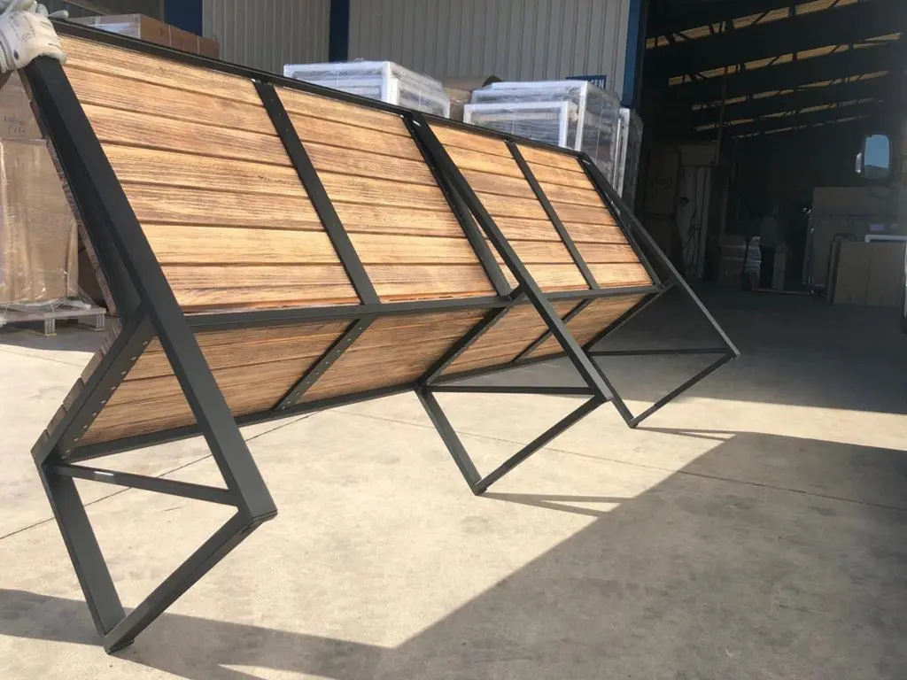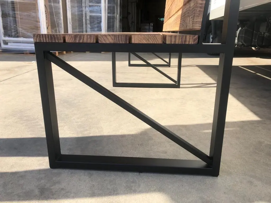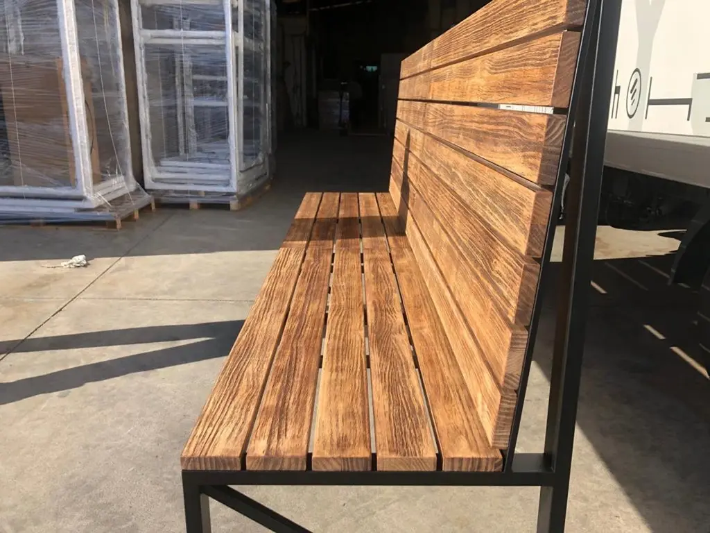New Park Or Garden Bench In Iron Structure With Wood Slabs, Indoor And Outdoor