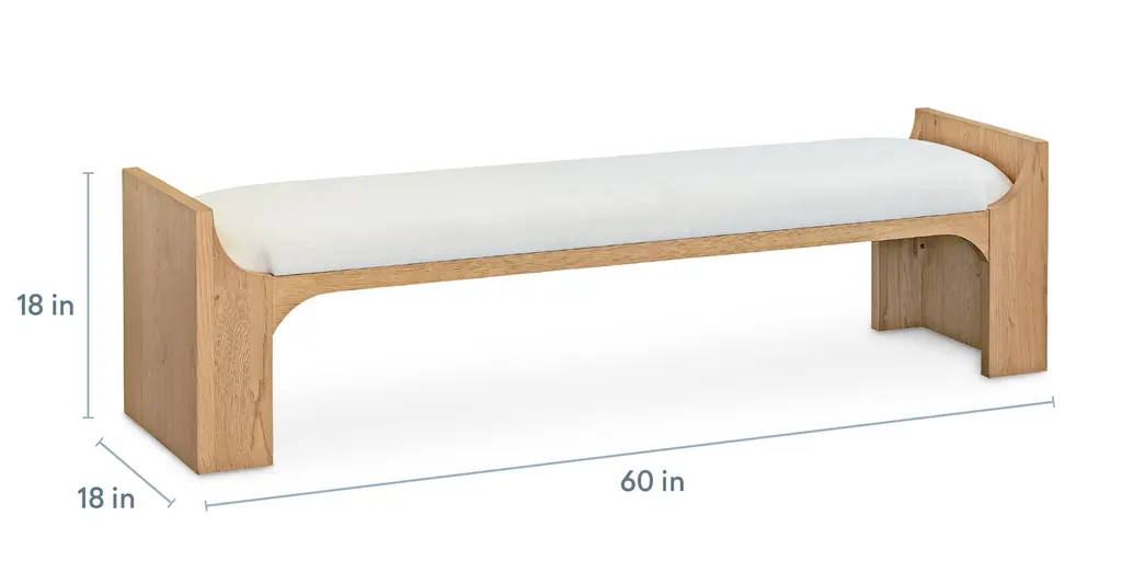 Heighten the function and finish of your bedroom with the sculptural comfort of our Newbury Bed Bench. Use it for a seat as you don shoes and boots by day, a perch to hold decorative pillows and extra throws overnight, and a sophisticated punctuation to your uniquely styled bedroom all the time. Choose a Natural White Oak or Newbury signature Parchment Gesso finish, with its specially coordinated fabric cushion cover. The bench's combination of clean lines and gentle curves help you align any selection of Newbury bedroom furnishings into a cohesive and personal style statement.