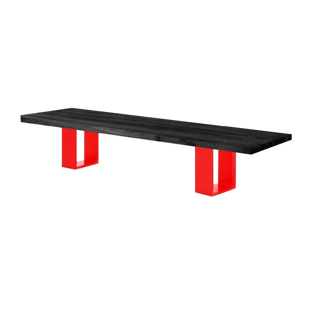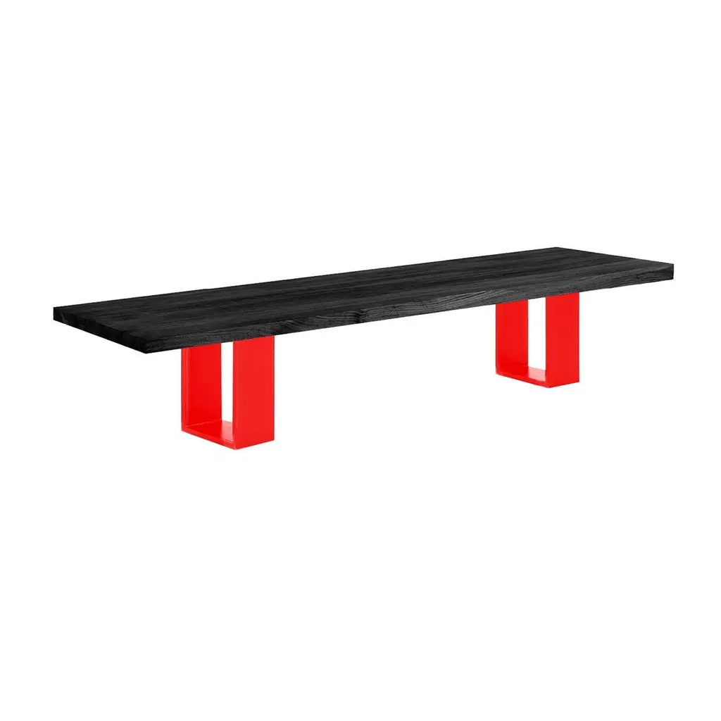 Newton, 78 Inches Black Vulcano And Red Iron Legs Bench, Made In Italy