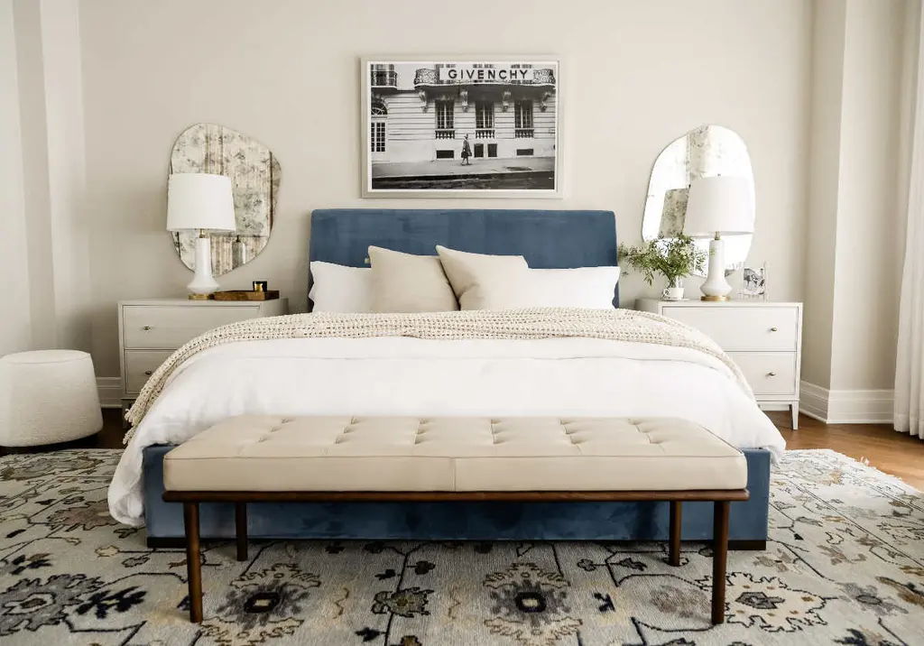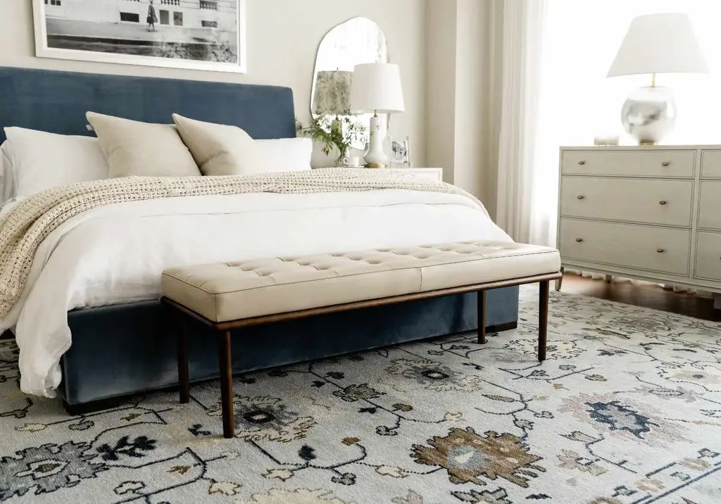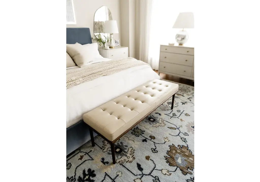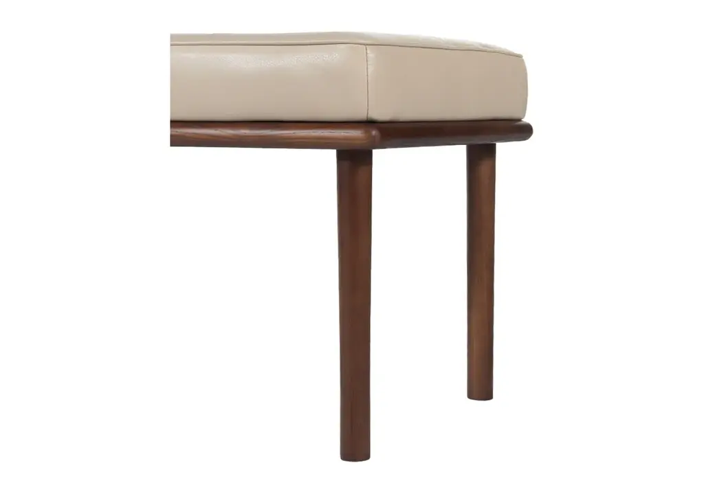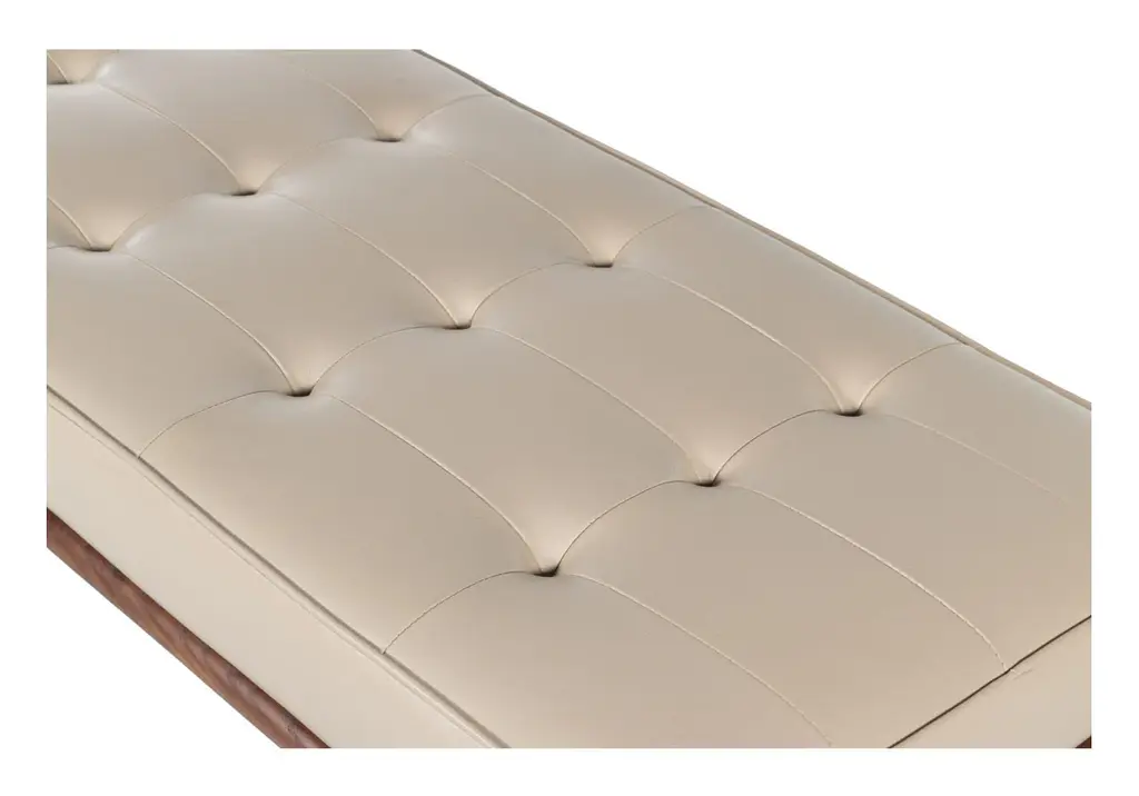 This chic bench features a luxurious leather finish, making it a stylish statement piece for your entryway or end of bed. Elevate any space with its elegant and functional design.