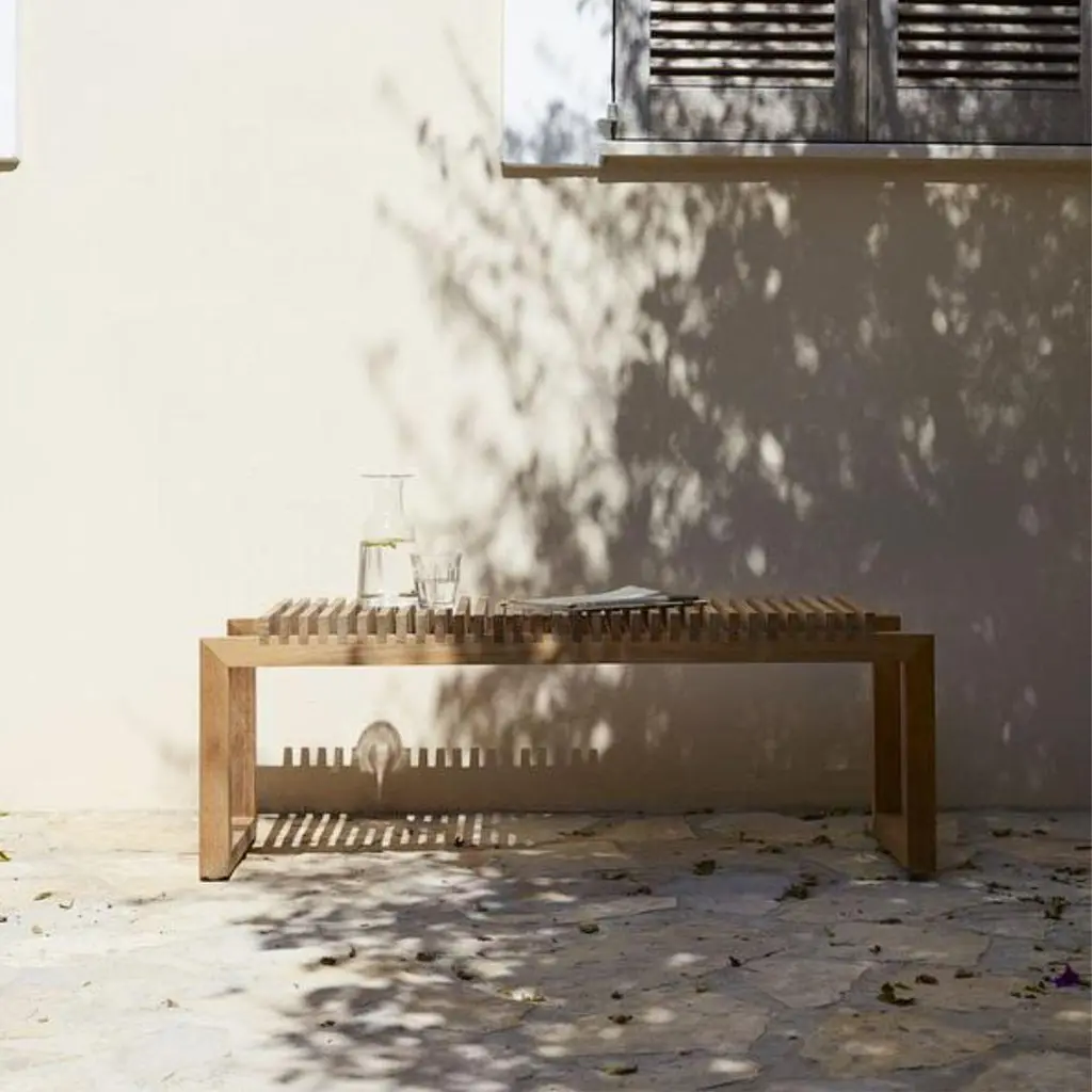 Niels Hvass outdoor 'Cutter' bench in natural oak for SkagerakSkagerak was founded in 1976 by Jesper and Vibeke Panduro, who took inspiration from their love of Scandinavian design and its rich tradition. The brand emphasizes sustainability by using responsibly sourced materials and production methods that minimize waste and reduce environmental impact. Each piece of handcrafted furniture is designed to age with grace and last for generations.The Cutter bench was originally designed for an exhibition called Walk the Plank. Here, inspired by the German Bauhaus movement, the idea of a slatted seat on a coherent frame came to life. The minimalist design is effortless in its expression and does well in most indoor and outdoor settings. Available in choice of FSC certified teak, natural oak or oak stained black and fabricated to the exacting standards of Skagerak.Price per item. Available to order in unlimited quantities. Available in a teak, natural oak, or black stained oak finish, as well as with an optional stool - please see our other listings. This listing is for the 'Cutter' bench in natural oak.In stock lead time 2-3 weeks. Out of stock lead time can be an additional 3-4 weeks, or longer. Lead times and stock availability are subject to change at any time and without notice. Please inquire for current lead times prior to placing time sensitive orders.Made to order.All sales final.