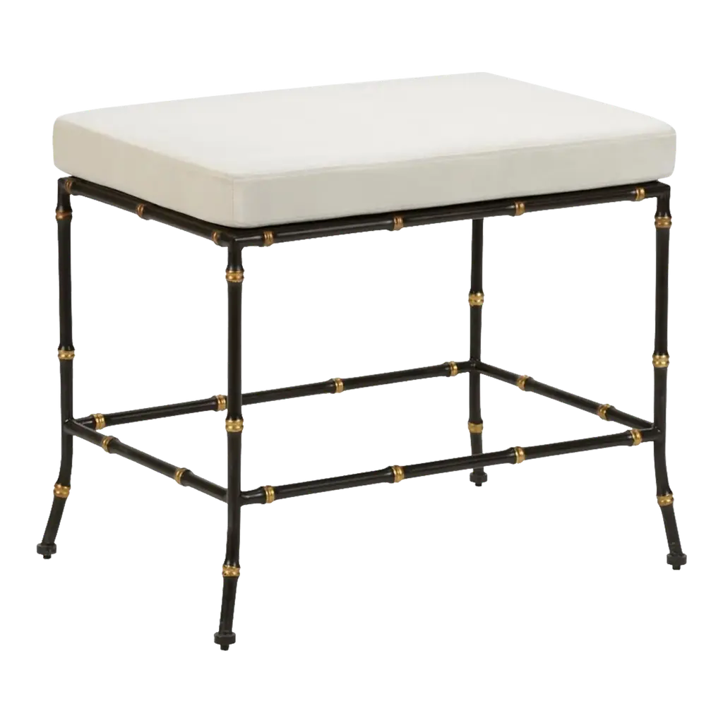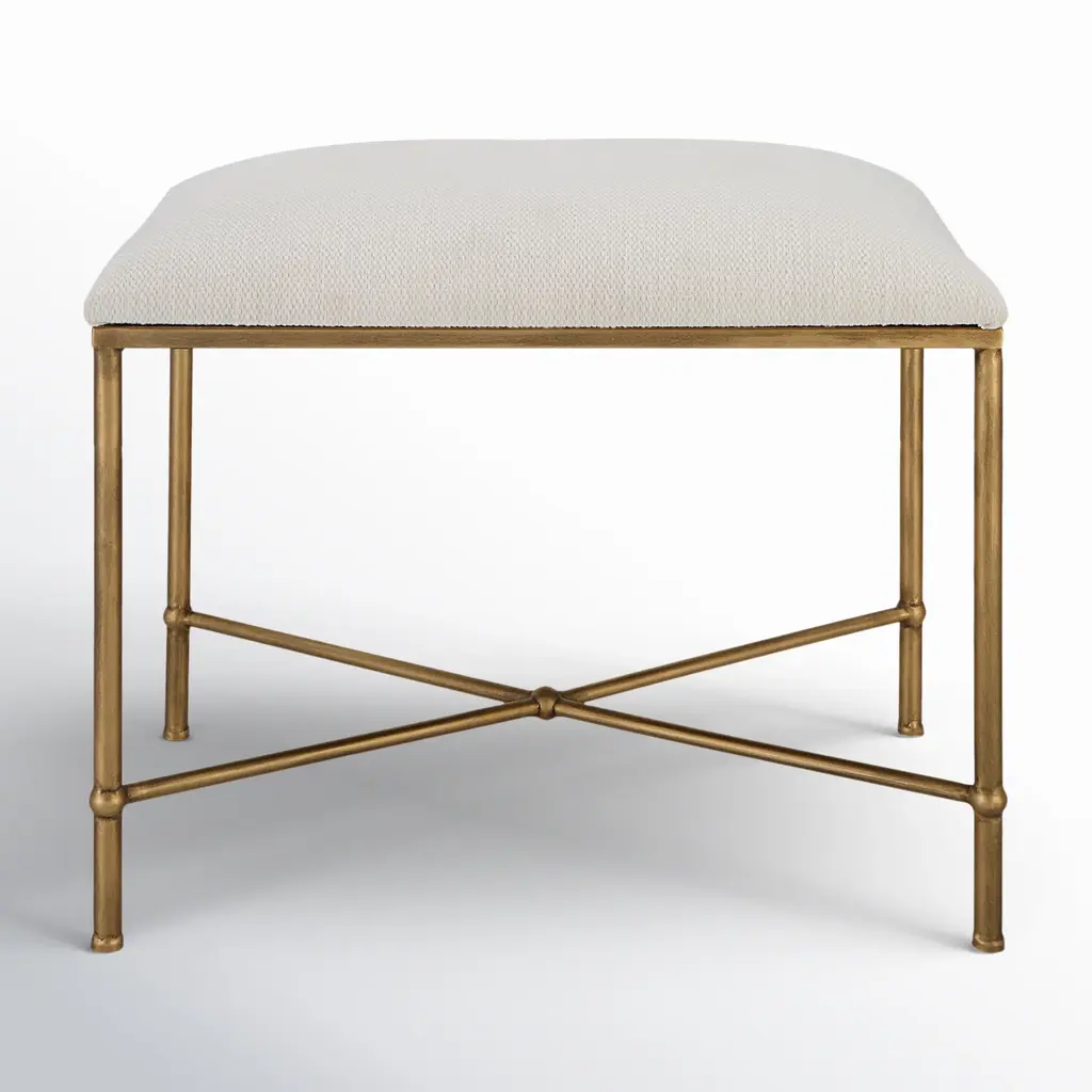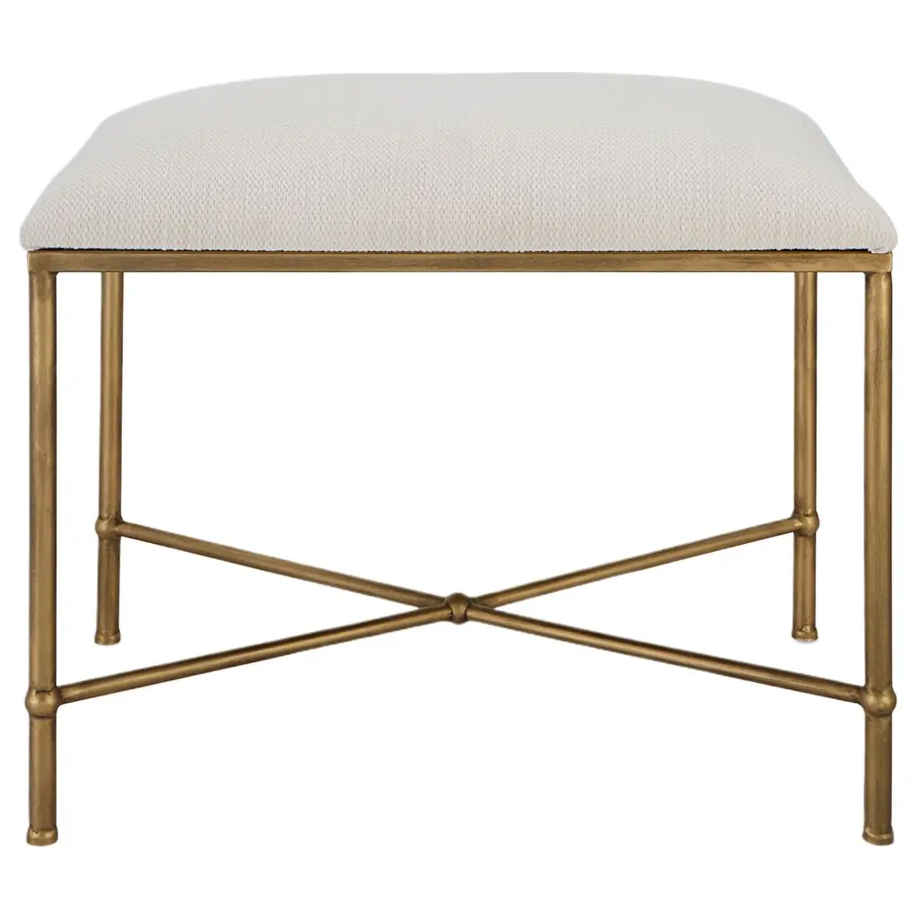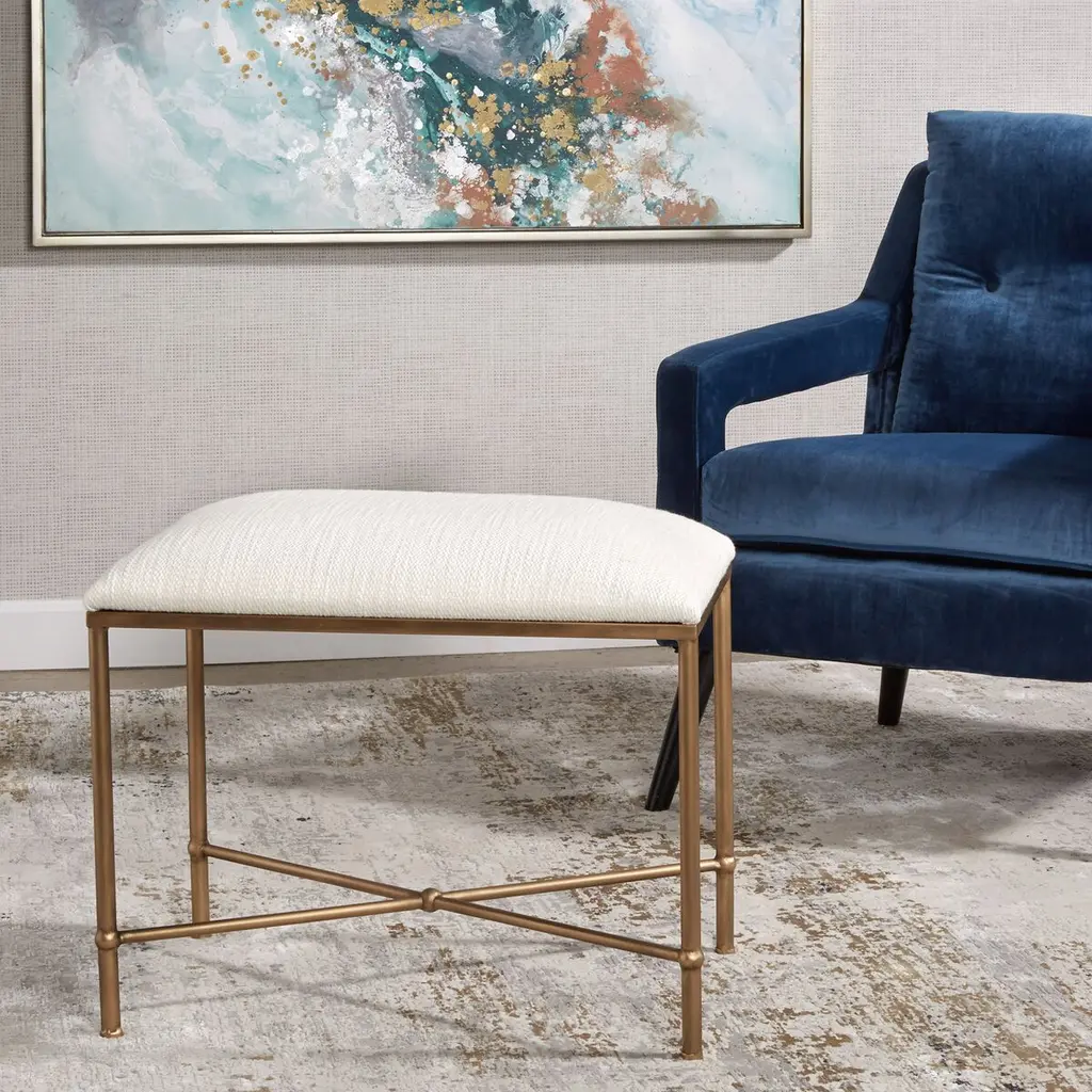 Embrace the allure of timeless elegance with this small bench, a harmonious blend of modern sophistication and classic inspiration. Its sleek iron frame exudes a refined charm, while the crisp white textured upholstery invites you to indulge in its serene comfort. This bench is a testament to the art of understated luxury, perfect for adding a touch of grace to any space.