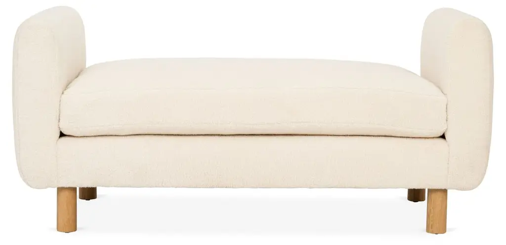 A stylish addition to a hallway, entry, or at the foot of the bed, this design boasts white oak-finished legs, beautifully tailored upholstery in plush sherpa fabric, and ample padding for long-lasting comfort and support. Handcrafted in the USA.