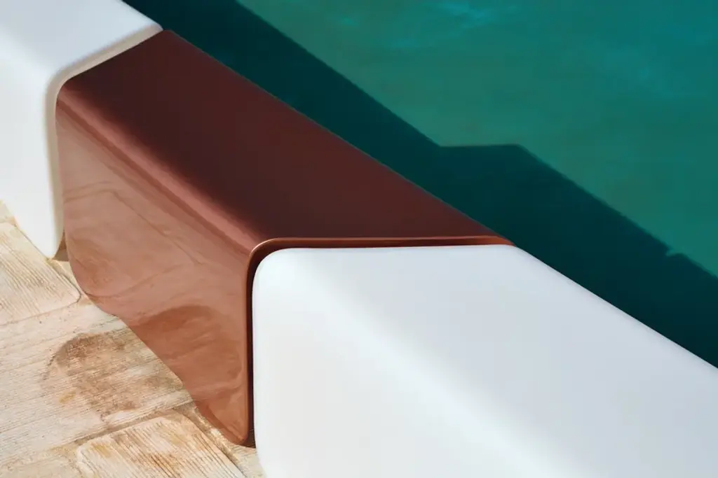 NOVA bench is a modular bench used as a side table too. The thirty degrees of tilts that characterized his design, gives the possibility of creating many combinations. This adaptability combined with a design with simple lines, making it an object easily inserted into any context.