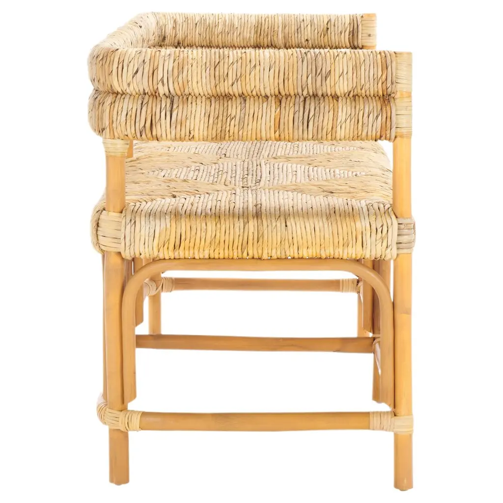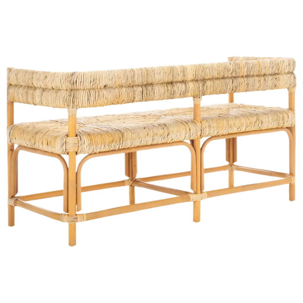 Elevate your space with the soothing aesthetics of the Novalo Banana Weave Bench. Crafted with wholehearted attention to detail, this delightful bench showcases the natural beauty of rattan and banana weave. Its fine craftsmanship exudes a warm and inviting charm that will stimulate your senses and inspire relaxation. The design radiates a natural aesthetic and blends seamlessly with varying room styles. The wooden frame, featuring handwoven elements, displays an understated elegance. This bench proves style and comfort can indeed coexist, with a fabric material that offers unrivaled ease and satisfaction. The Novalo Banana Weave Bench is a splendid addition to any space, pushing boundaries in design and comfort. Discover a new standard of home lifestyle beauty with this uniquely crafted bench.