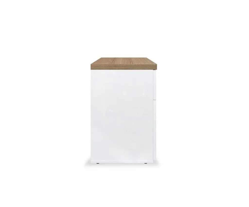 Made in Italy, the Oakley Entryway Bench is designed to help you take your home organization to the next level. Place this useful bench in your entryway to create an area for storing your shoes, bags or other household items you'd like to have at your disposal. Durably constructed and topped by white high-gloss and oak-inspired finishes, this bench offers convenient shelving within and ample storage opportunities. One drawer and one cubby stand ready to keep your belongings safely stowed away, while the clean lines of this piece lend themselves to the overarching tidiness of your space. Made in Italy from 100% recycled eco-friendly materials, this piece was deliberately produced with minimal environmental impact.