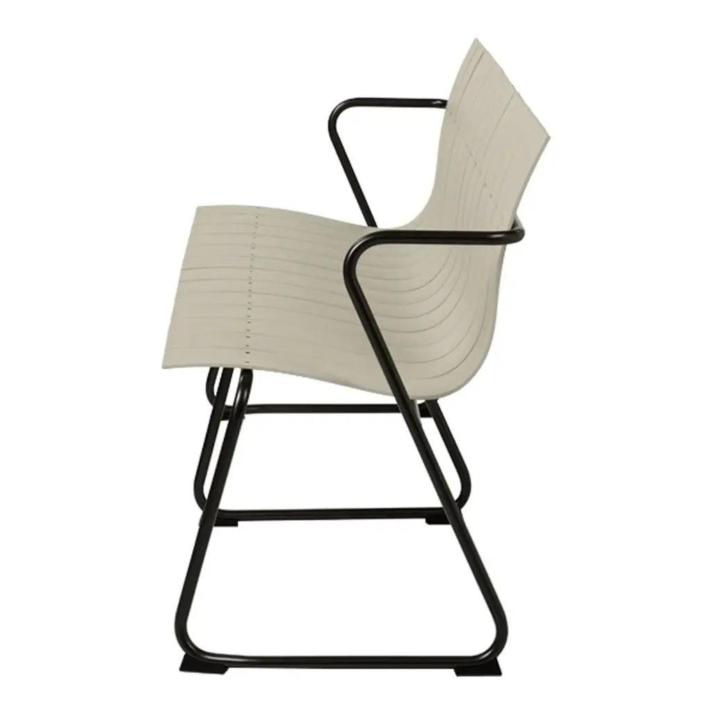 The Ocean Collection is a reimagined table-and-chair collection (originally designed in 1955) in ocean waste plastic, combining innovative solutions to prevent pollution of the world's oceans - with one of the 20th century's most renowned designers, Nanna Ditzel. The series is characterized by its light structure with repeated slats and metal frames, made and tested for outdoor use. The ocean waste plastic and recycled plastic (PP) honours the UN Sustainable Development Goals of protecting “Life Below Waterâ€� (SDGs 14) and “Responsible Consumption and Productionâ€� (SDGs 12) and “Partnership for the Goalsâ€� (SDGs 17). The Ocean Collection is designed for disassembly, meaning that the design allows each component in its purest form to recycle into new production circles.