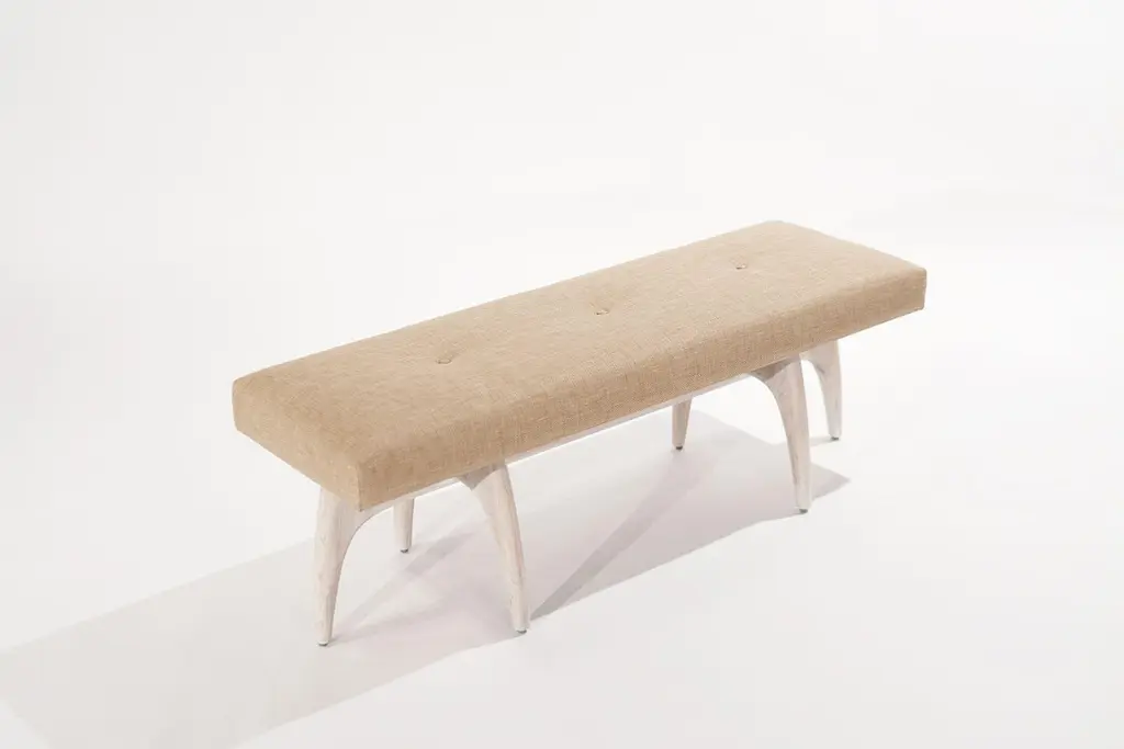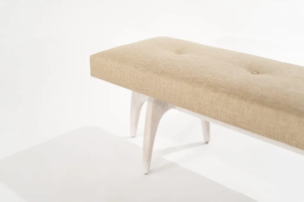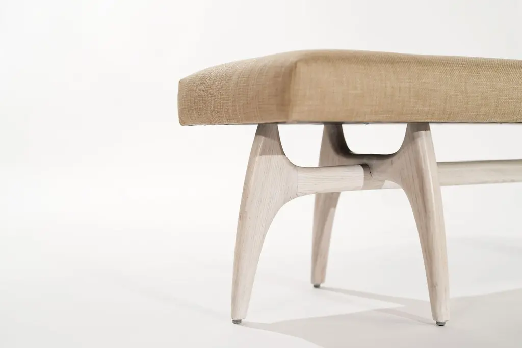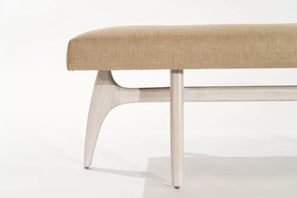 Introducing the Odyssey Bench by Stamford Modern, a captivating fusion of sculptural artistry and impeccable craftsmanship. Constructed from solid oak or walnut, this bench exudes both durability and timeless elegance. With seven versatile finishes to choose from, it seamlessly integrates into any decor, while custom dimensions ranging from 48" to 72" ensure a perfect fit for your space. Available exclusively in Customer's Own Material (COM) or Customer's Own Leather (COL), the Odyssey Bench invites you to personalize your aesthetic. With a swift lead time of 6 weeks, this bench is not just a piece of furniture; it's a tailored masterpiece that transforms your space into a realm of refined sophistication.
