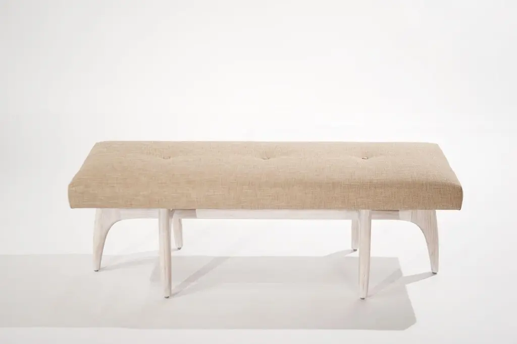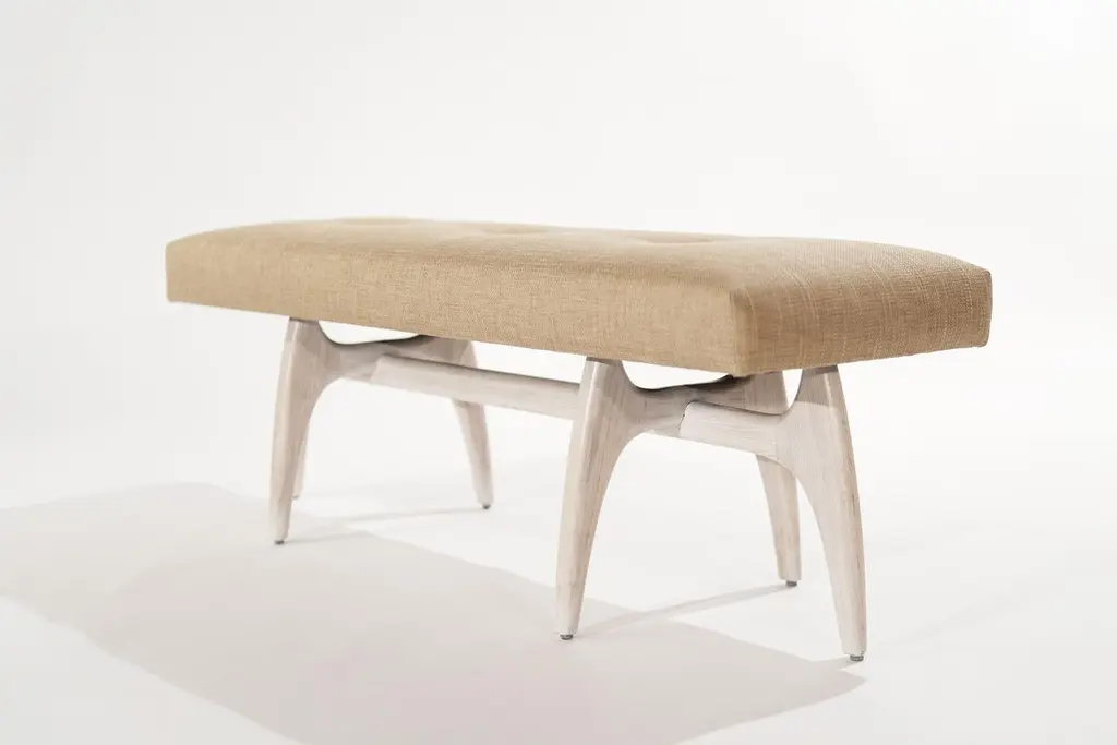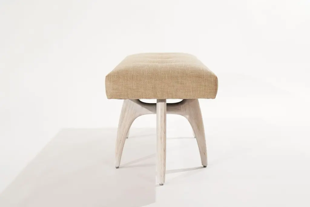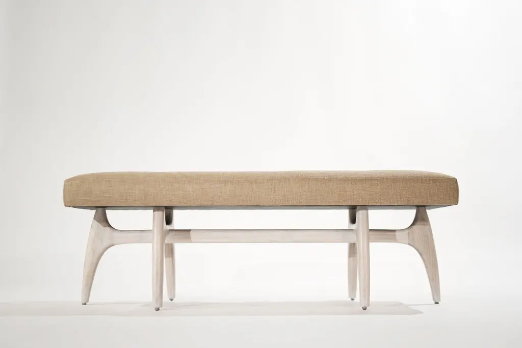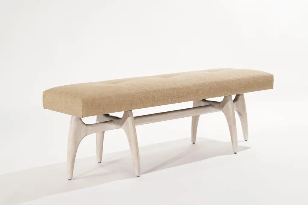 Introducing the Odyssey Bench by Stamford Modern, a captivating fusion of sculptural artistry and impeccable craftsmanship. Constructed from solid oak or walnut, this bench exudes both durability and timeless elegance. With seven versatile finishes to choose from, it seamlessly integrates into any decor, while custom dimensions ranging from 48" to 72" ensure a perfect fit for your space. Available exclusively in Customer's Own Material (COM) or Customer's Own Leather (COL), the Odyssey Bench invites you to personalize your aesthetic. With a swift lead time of 6 weeks, this bench is not just a piece of furniture; it's a tailored masterpiece that transforms your space into a realm of refined sophistication.