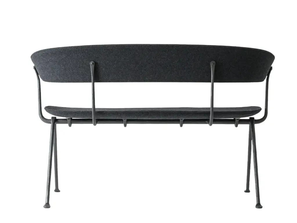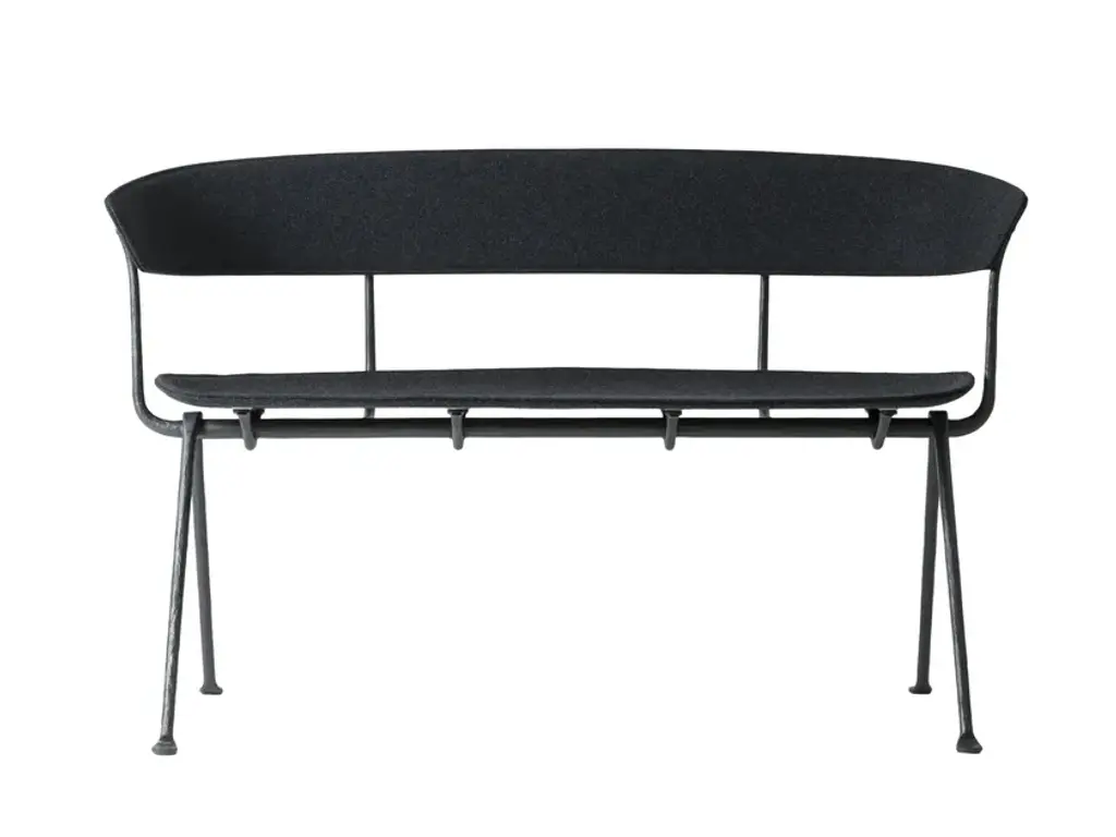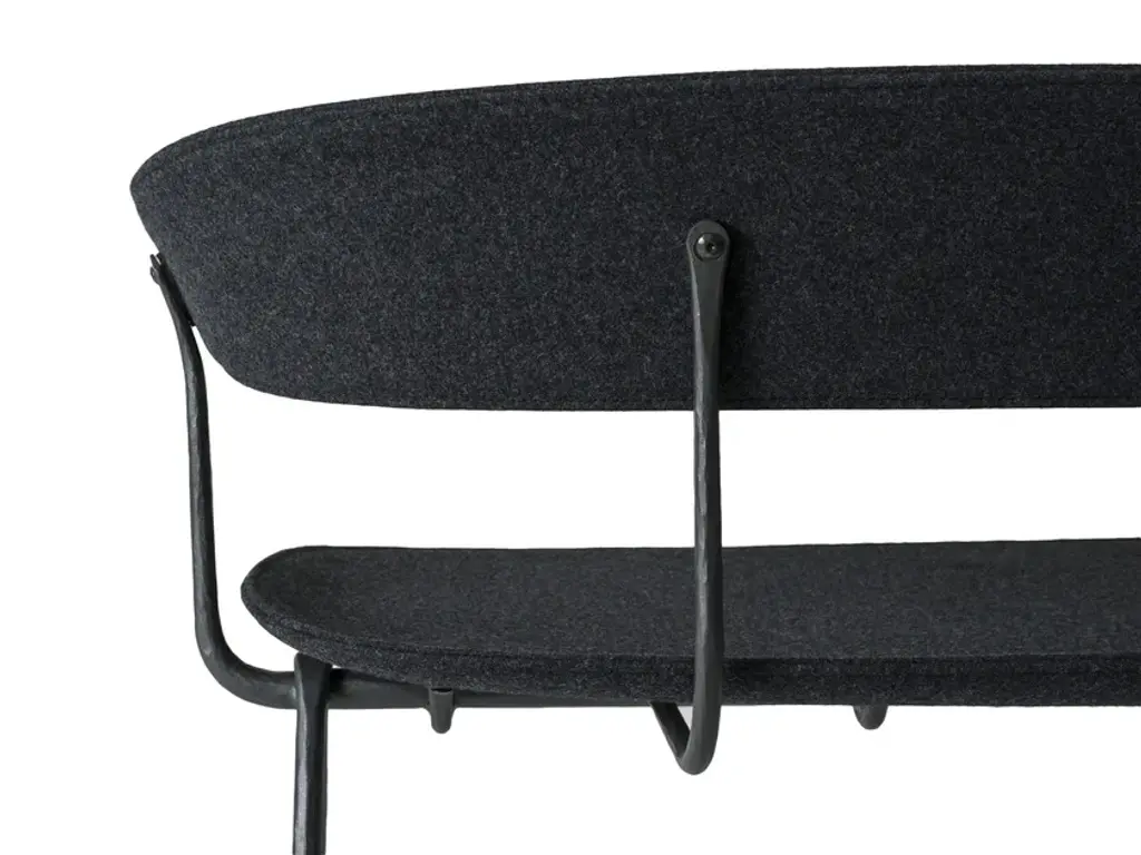 Material bench: frame in wrought iron, galvanized or painted in polyester powder. Seat and back in beech plywood or in plywood covered in fabric (Kvadrat “DivinaMD” e “Divina Melange”).Italian design and traditional craftsmanship are harmoniously combined in the Magis Officina collection, which explores a new creative language through the ancient fabrication process that is iron forging. Throughout history, this technique has been used to create an infinite number of everyday objects and decorative artefacts. The products in this collection feature a typical wrought iron finish that makes them living design objects, and their distinctly industrial feel is guaranteed to create interesting contrasts in any setting. Following the tables, chairs and stools, the collection expands further with a series of accessories, with a low chair, with a twoseater bench and a collection of upholstered pieces (armchair, ottoman, two and threeseater sofas). All these pieces feature a forged iron structure, with the allure of a raw material handed down through the centuries, alive, with those slight imperfections that make each item in this collection unique, with a profoundly refined and elegant spirit.