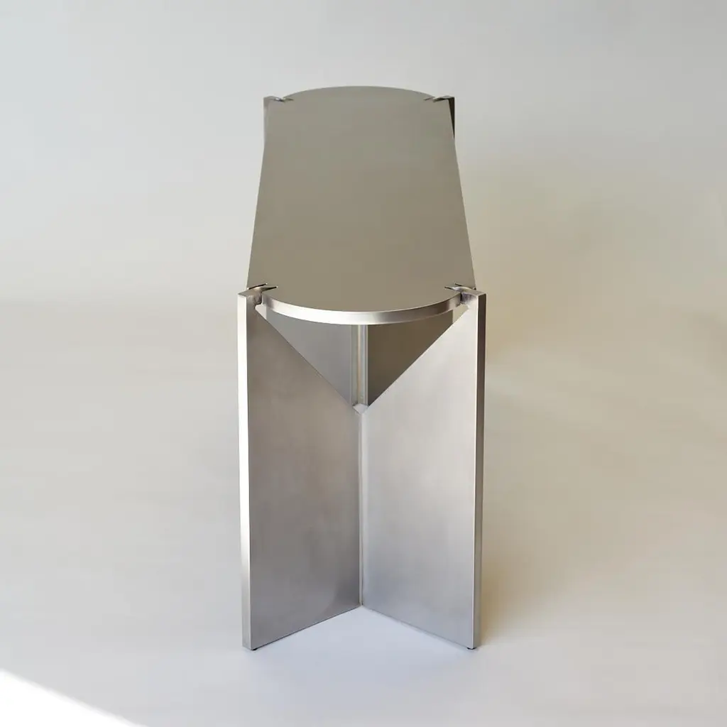 Introducing the ONE Bench, a testament to simplicity and strength within the ONE family. Crafted from a single sheet of metal, it undergoes a transformative journey from a flat surface to a dynamic three-dimensional form, echoing the resilience and artistry of traditional forging techniques merged seamlessly with modern design sensibilities.Each curve and contour of the ONE Bench reflects the raw power and elegance of stainless steel, exuding a sculptural quality that captivates the eye and invigorates any space it inhabits. It is the embodiment of minimalist sophistication, commanding attention with its unassuming yet commanding presence—a true testament to the concept of 'brutal elegance.'Available in three distinct finishes—Brushed Stainless Steel, Warm Grey Patina, and Vivacious Patina—each option accentuates the stool's inherent beauty and durability. The polished outer edges add a touch of refinement, elevating its visual appeal to a level of understated luxury.The ONE Bench: where simplicity meets strength, and artistry meets functionality—a timeless addition to any design aficionado's collection.