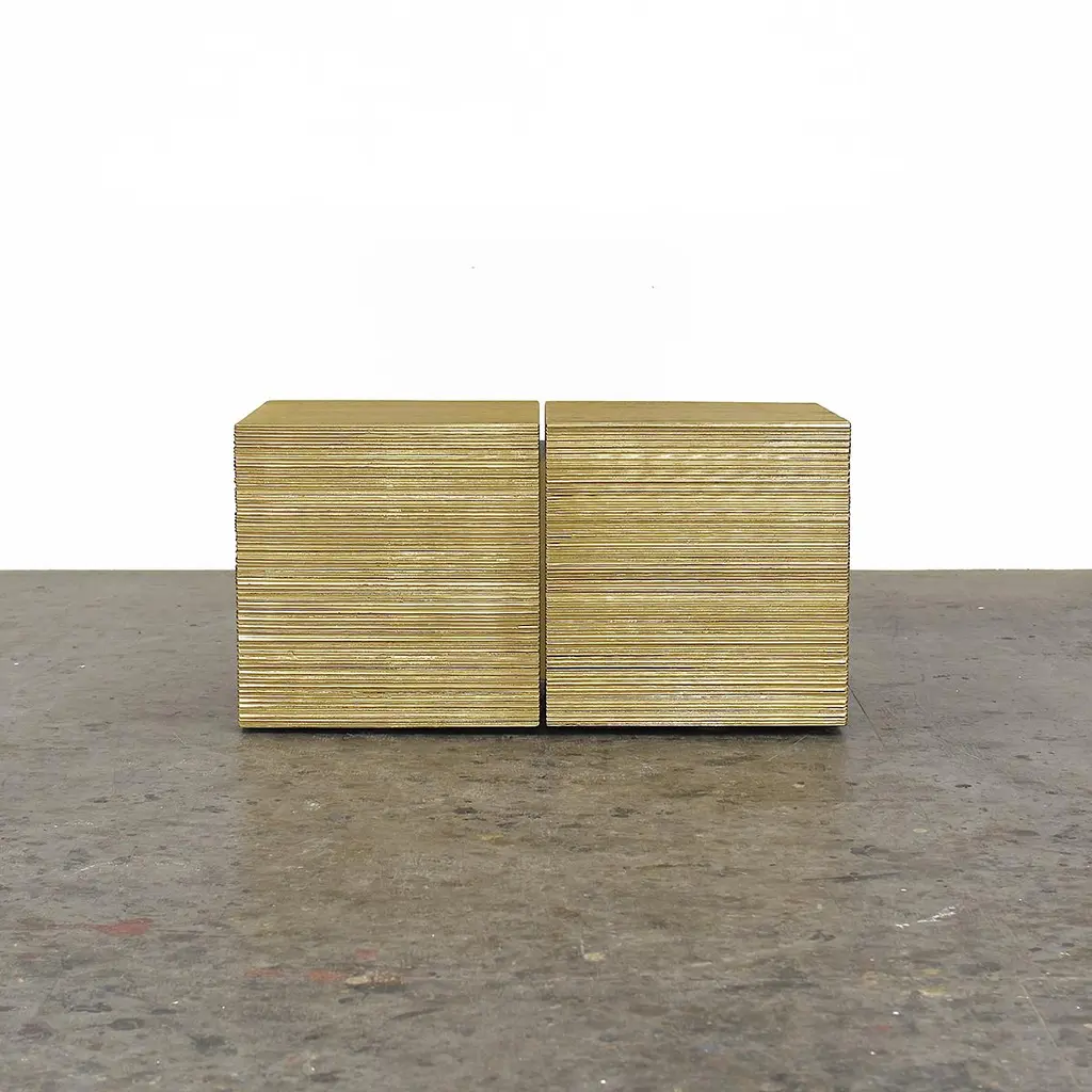 ORO - OS3 bench by John Eric ByersORO collectionDimensions: W 76 x D 38 x H 38 cmMaterials: maple hardwood + gold metallic lacquer Hand shaped + hand textured + hollow core stacked laminationJohn Eric Byers creates geometrically inspired pieces that are minimal, emotional, and modernly refined.John's individually handmade work is guided by purity in form, surface texture, structure, and respect for use of materials. Heralded as a leading American artist working in wood, permanent collections include the Smithsonian American Art Museum, the Philadelphia Museum of Art and the Museum of Arts and Design in NYC. Numerous awards include a Louis Comfort Tiffany Foundation Award, New York Foundation of the Arts Awards, and inclusion in the Smithsonian's Oral Archives of American Arts.