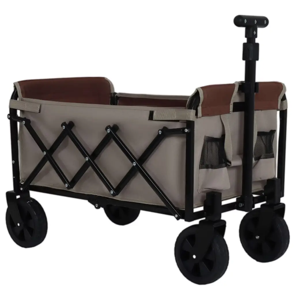 Orrd All-in-1 Folding Camping Wagon With Bench Seat, Storage & Dog Tether, Beige/brown