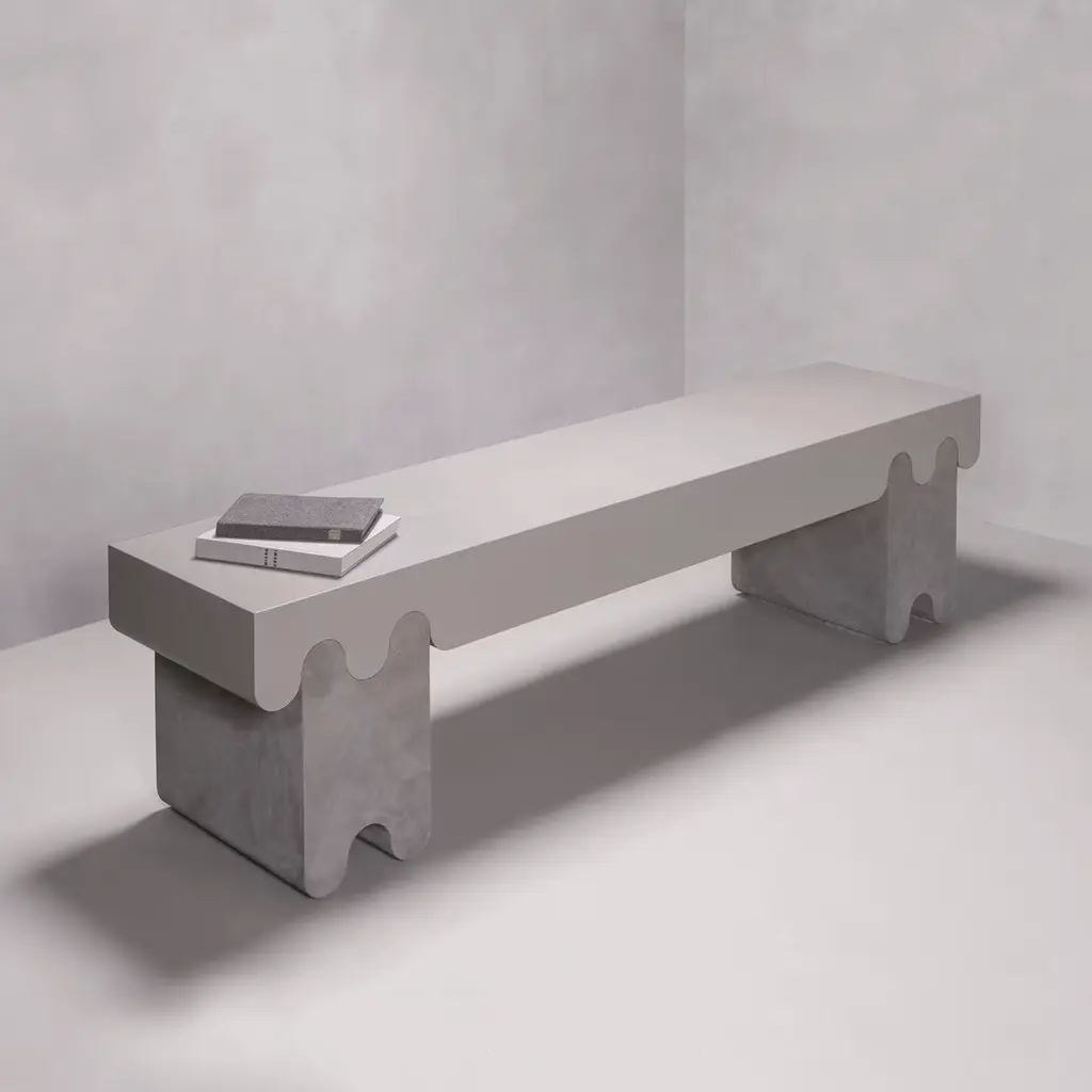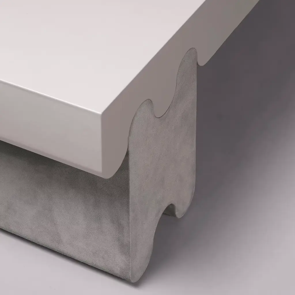 Inspired by the sleek and timeless shapes of the pieces used in the Ancient Greek and Roman game "Jeu des Osselets", this splendid bench combines modern flair and classic sophistication in a clean and essential design. Marked by sinuous details and a harmonious silhouette, it is upholstered in leather boasting two different shades of gray. Please consult the Concierge for further details on materials, and size customization options.