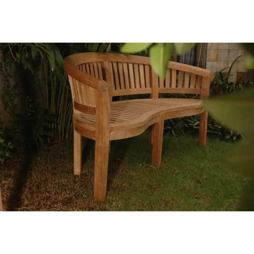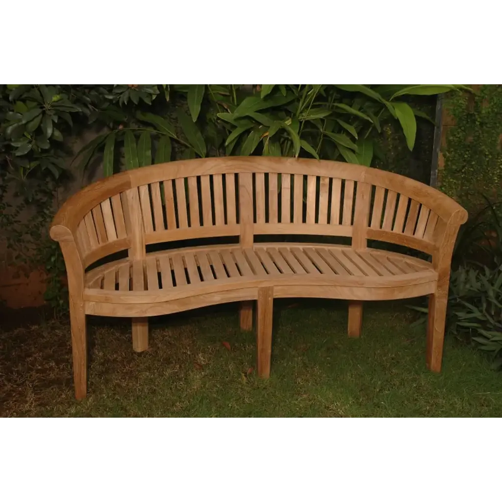 This “Curve 3-Seater Extra Thick Bench” by Anderson Teak is a unique one of a kind “peanut” style bench perfect for the yard and outdoors. Featuring its iconic curved back and armrest that encompasses the entire length of the bench, it is smooth to the touch with the authentic teak feel. Stable, bulky, and heavy, it is a quality built bench that spares no expense when it comes to quality of wood or thickness. Over time, the wood will weather to a beautiful silver gray patina – or occasionally scrub down with soap and water to keep in pristine condition. Made from Genuine Grade-A Teak, it is sanded smooth without any finish in its natural form and color; the perfect material for weathering the outdoors.