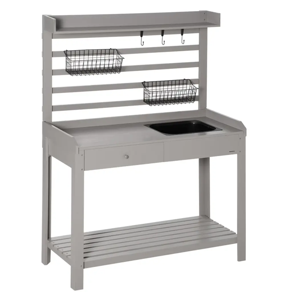 Outdoor Potting Bench With Removable Sink,sliding Drawer - Grey