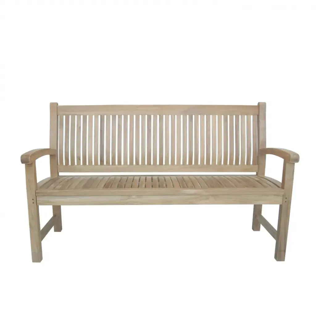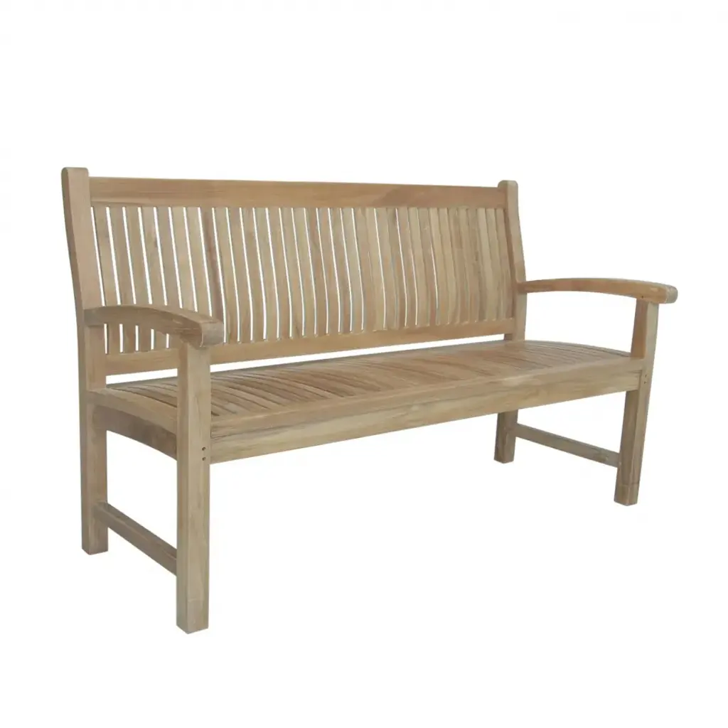 The Sahara 3-Seater Bench is a spacious, quality built teak patio bench perfect for the outdoors. For the sake of comfort, individual teak slats curved for comfort elegantly strips across the back and seat for an excellent seating experience. Place a single bench under a tree, or use a group of benches and chairs for a complete outdoor collection. Made from Genuine Grade-A Teak, the bench is sanded smooth without any finish in its natural form and color.