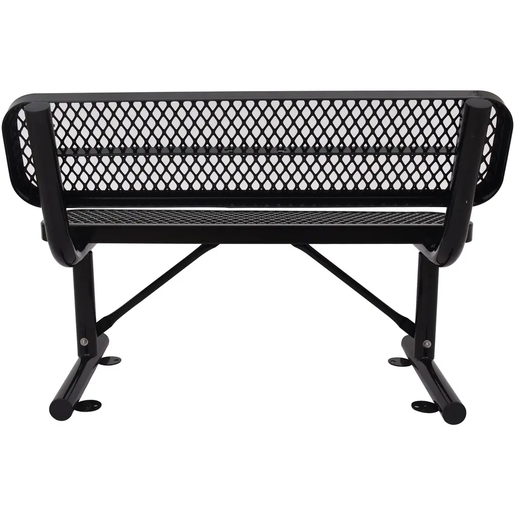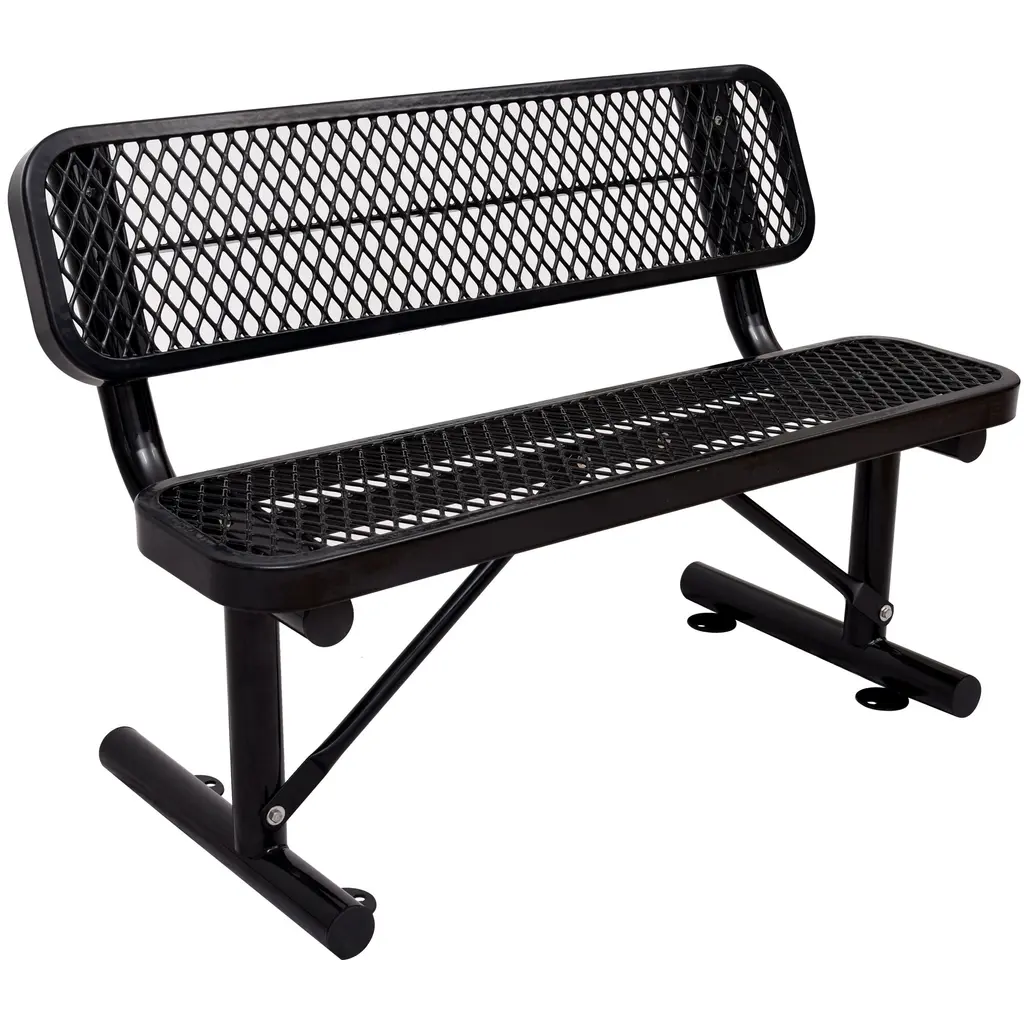 Heavy-gauge perforated metal with a durable thermoplastic coating on benchesBack side and Stool top: 48"L x 12"W, The Back side tilt Angle is about 75 degrees; Overall Dimensions: 48"L x 24"W x 33"H; Frame Material: Powder-Coated Steel; Mounting Type: Portable or SurfaceThe black back side and stool surface are dipped in plastic treatment, the thickness of the dipped plastic is about 1MM; Black bracket spray treatmentThe metal mesh bench has a hollowed out backrest and bench top, perfect for lawn, park, deck, garden, patio, porch and more. Powder coated steel metail, for use in hot sun, snow, rain, salt spray and strong winds.