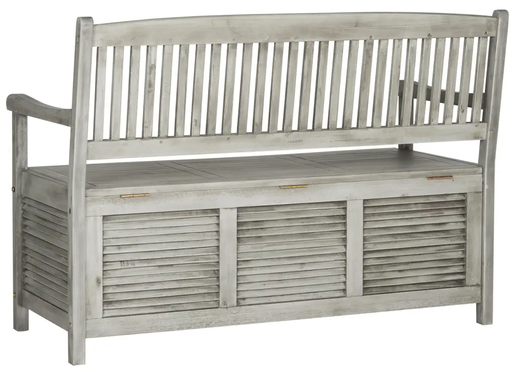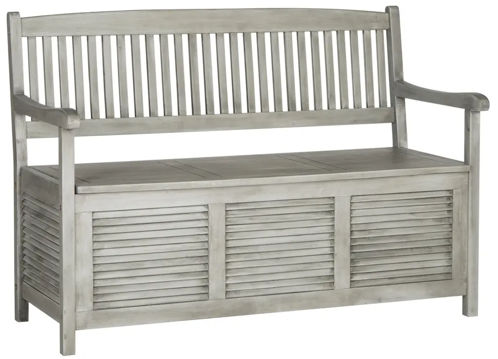 Outdoor Wood Storage Bench In Grey