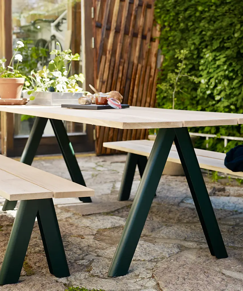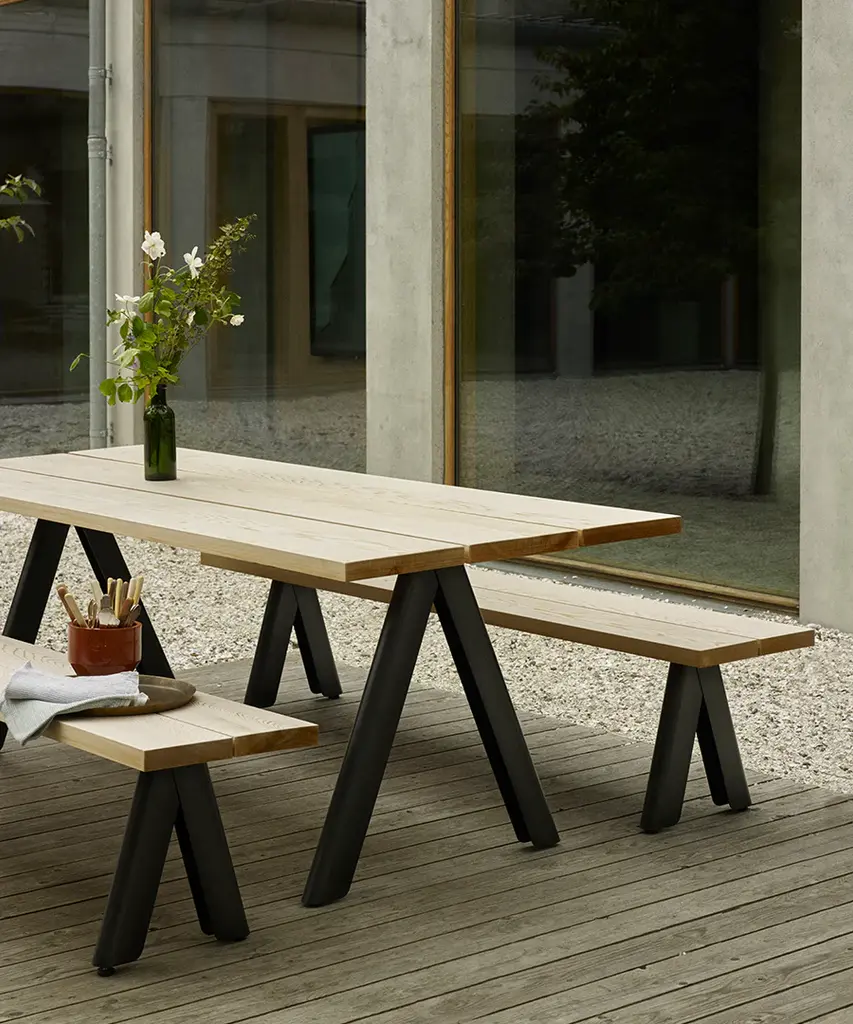 The Overlap series offers simple, high-quality design that stands strong on its overlapping steel legs. The contrast between the rustic wooden planks and the powder-coated steel gives this design a modern edge - an obvious choice, both indoors and outdoors. Designed by TAF and manufactured by Skagerak, a family-owned design company from Denmark established in 1976.
