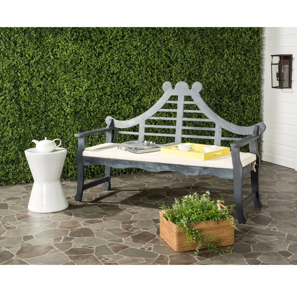 Framed in richly figured acacia with a pagoda-style splat, this shapely bench adds a touch of East Asian flair to any backyard or garden. Topped with a seat cushion for added style and support, it is inspired by Eastern Asian architecture and makes a standout addition to your favorite outdoor space.