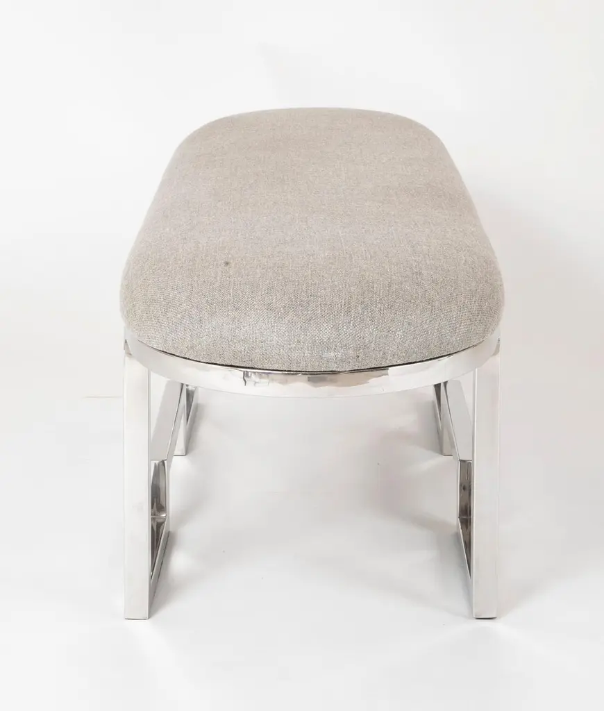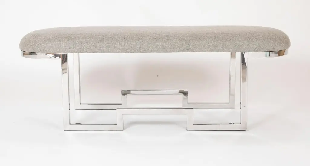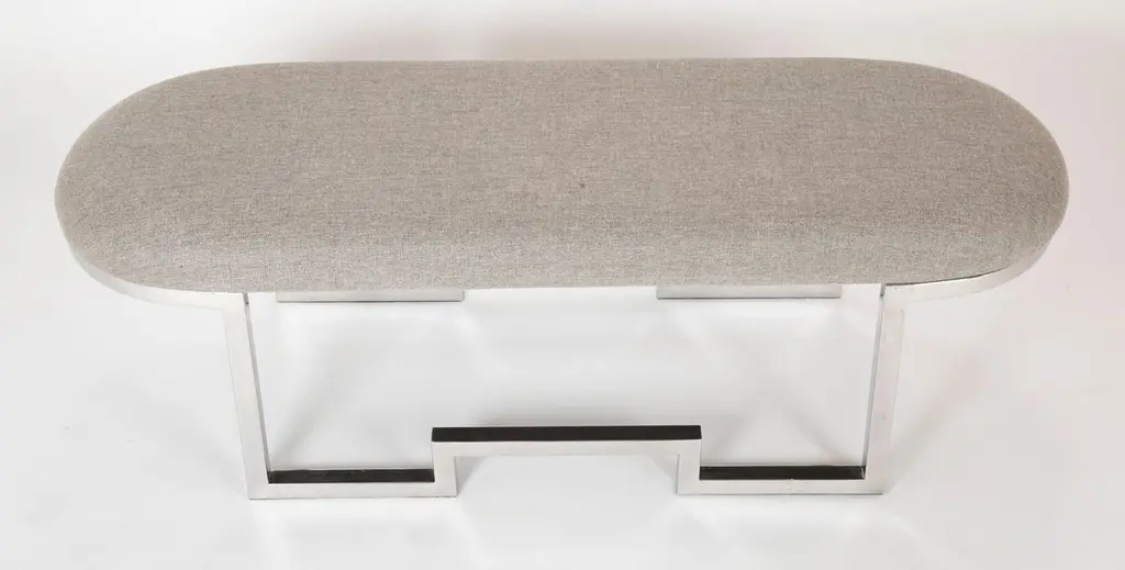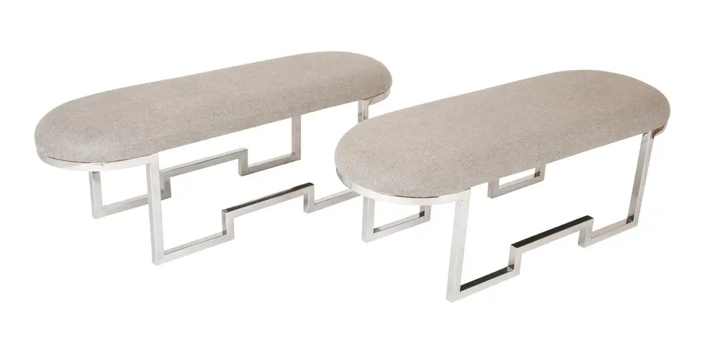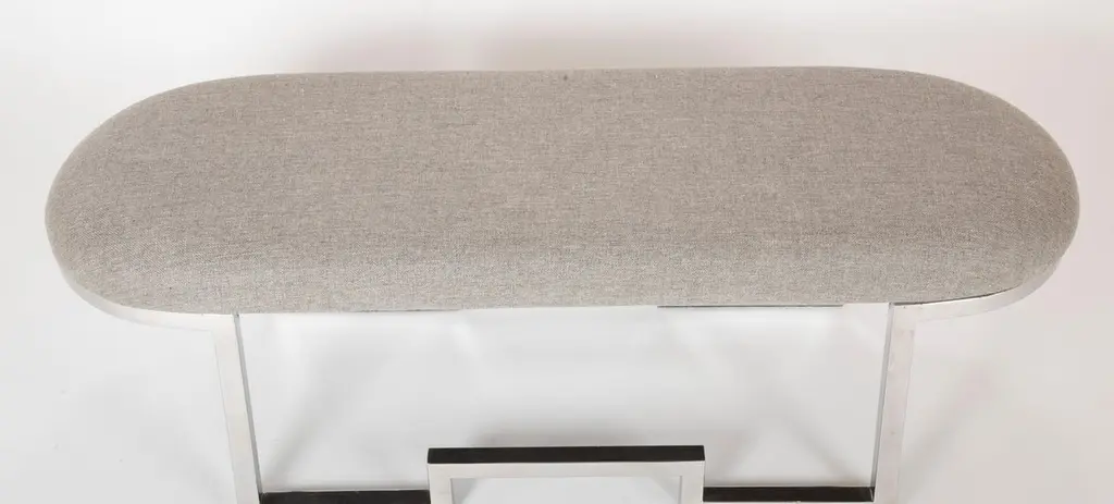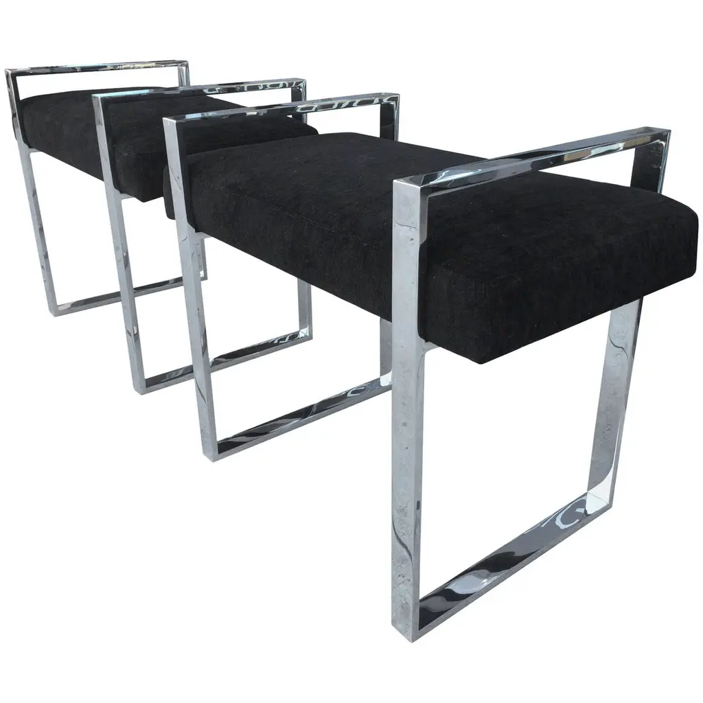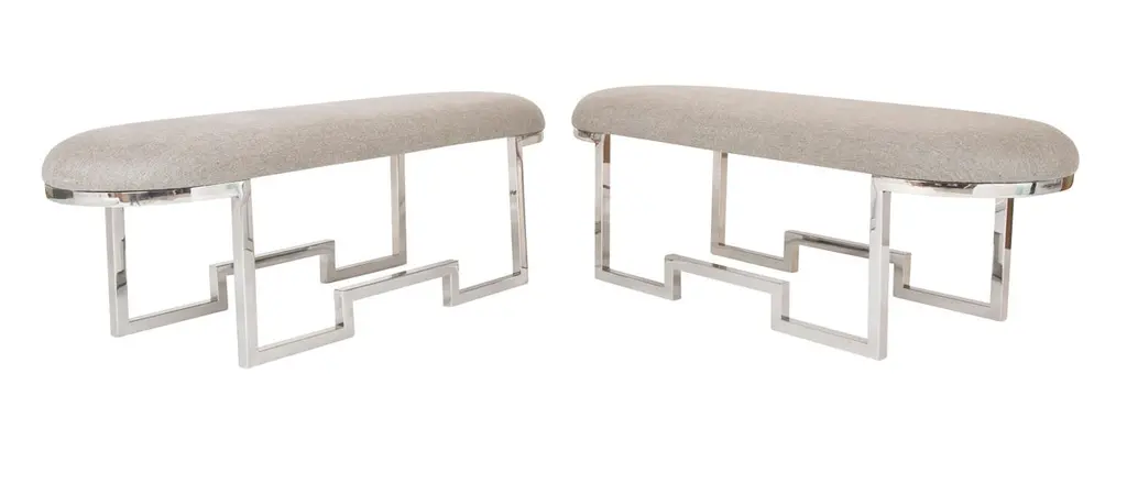 A pair of newly upholstered chrome Modernist benches, circa 1970s.