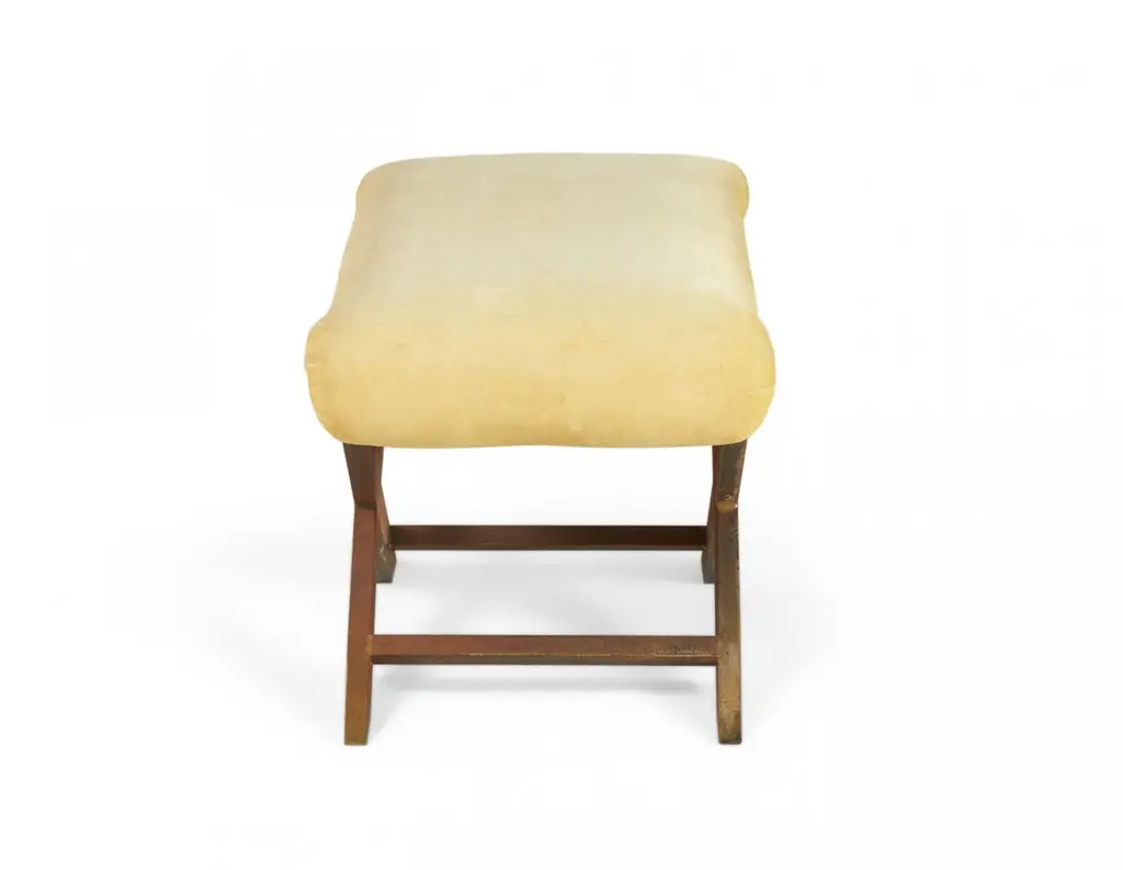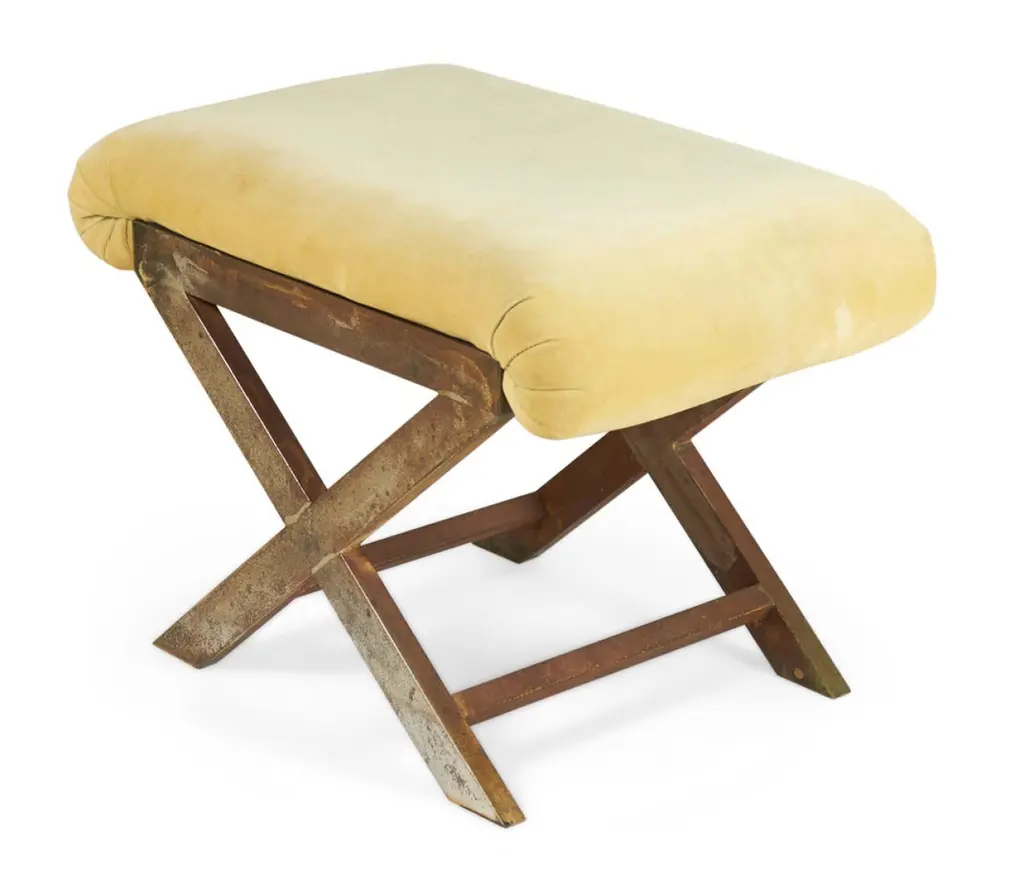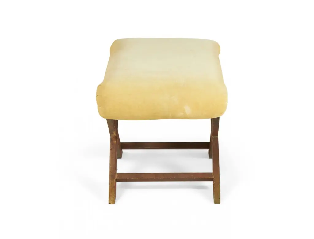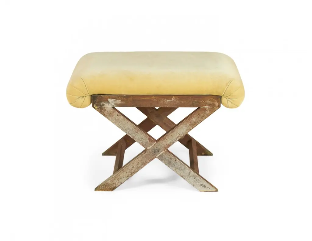 Pair Of Mid-Century Brass And Tan Velour X-Benches