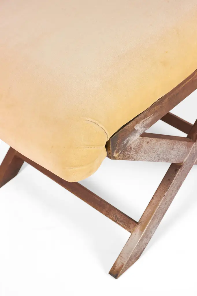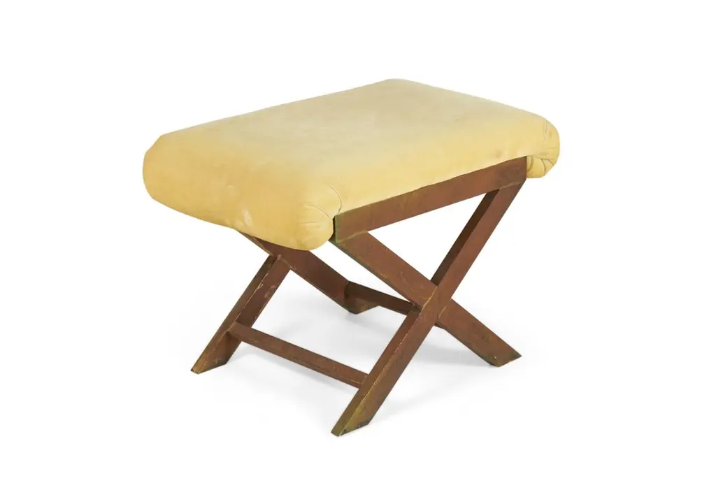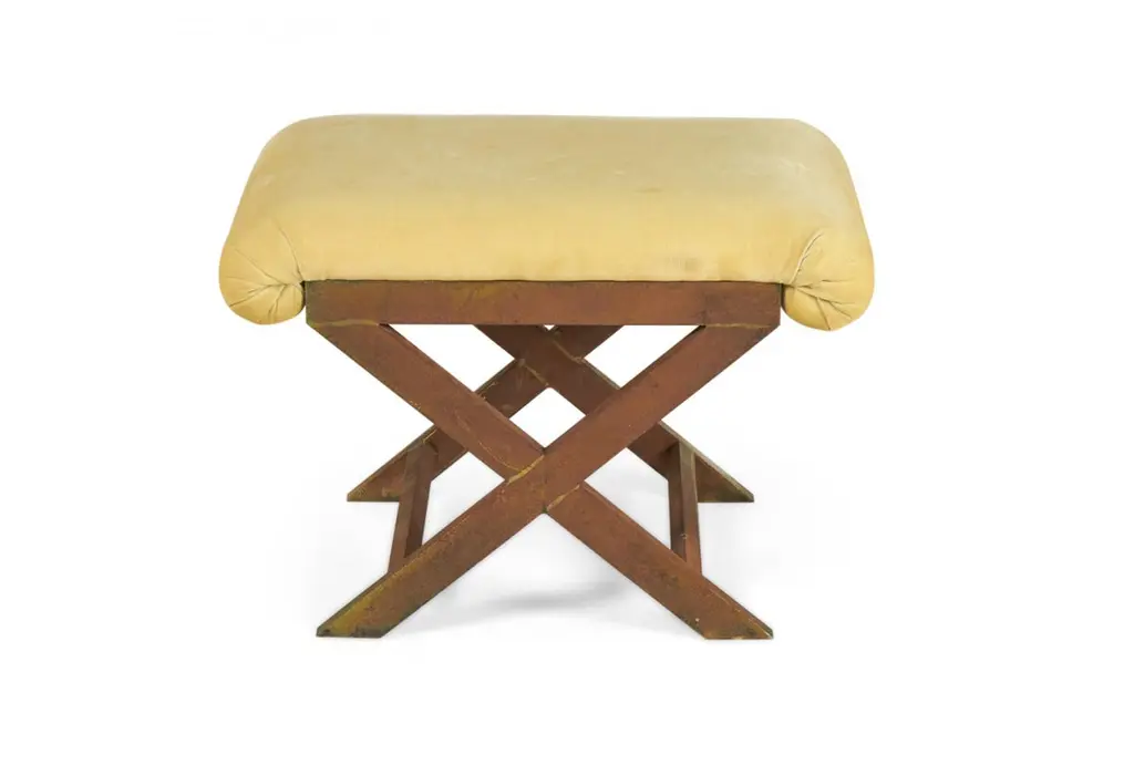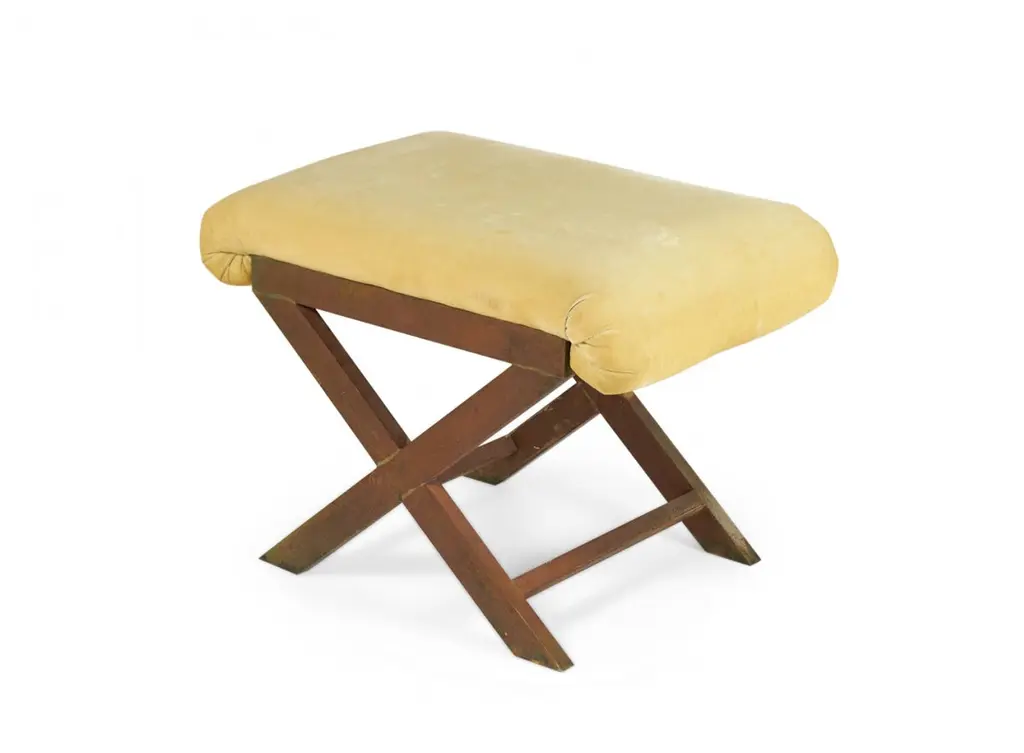 Pair Of Mid-Century Brass And Tan Velour X-Benches