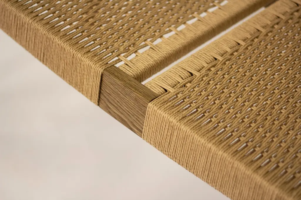 Contemporary bench in FSC British fumed oak with FSC natural Danish cord handwoven seat. Dimensions are approximately 120cm L x 44.3cm H x 33cm D. Available as a pair.This set is ready made and available immediately, but can be made-to-order in other wood finishes: natural oak, limed oak or ebonised oak. The seat comes in either natural or black Danish cord.