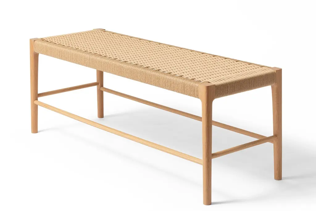 Papyri Bench, Occasional Woven Bench In White Oak And Natural Danish Chord