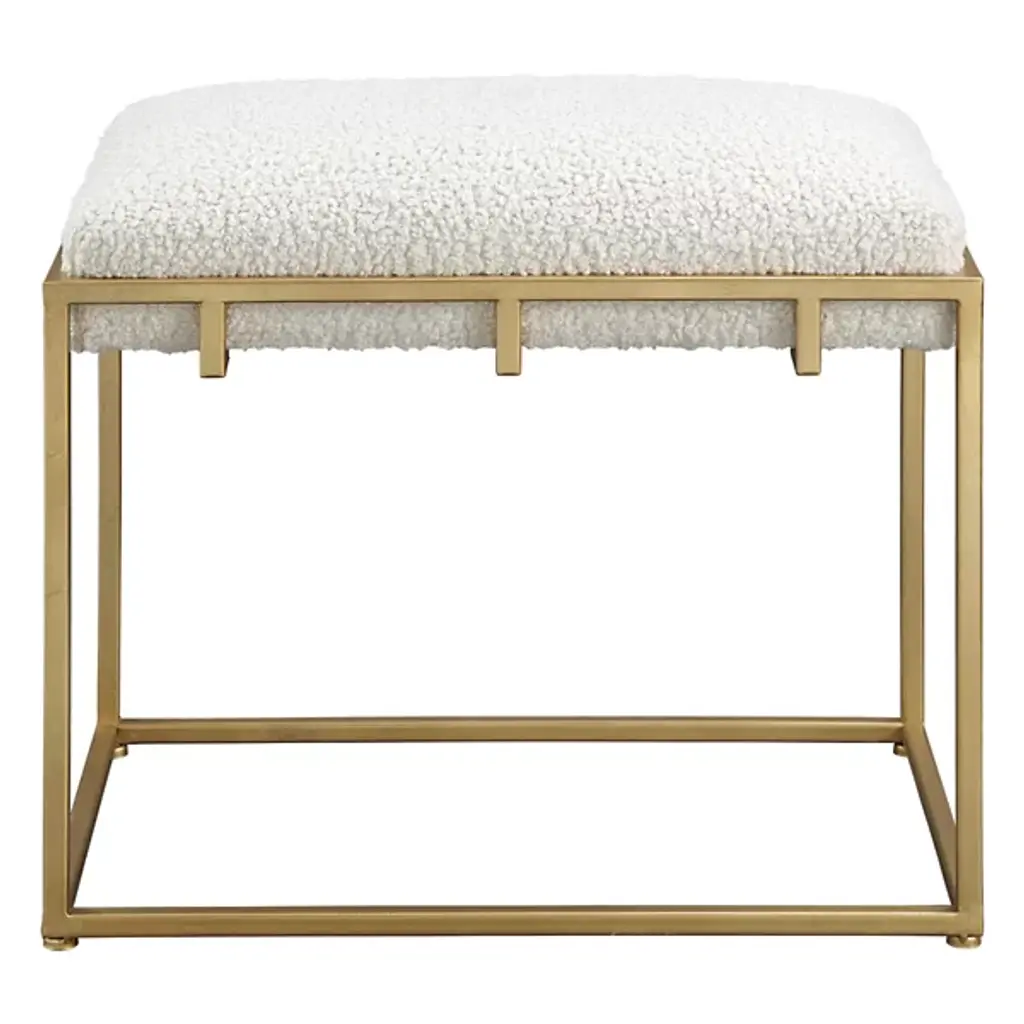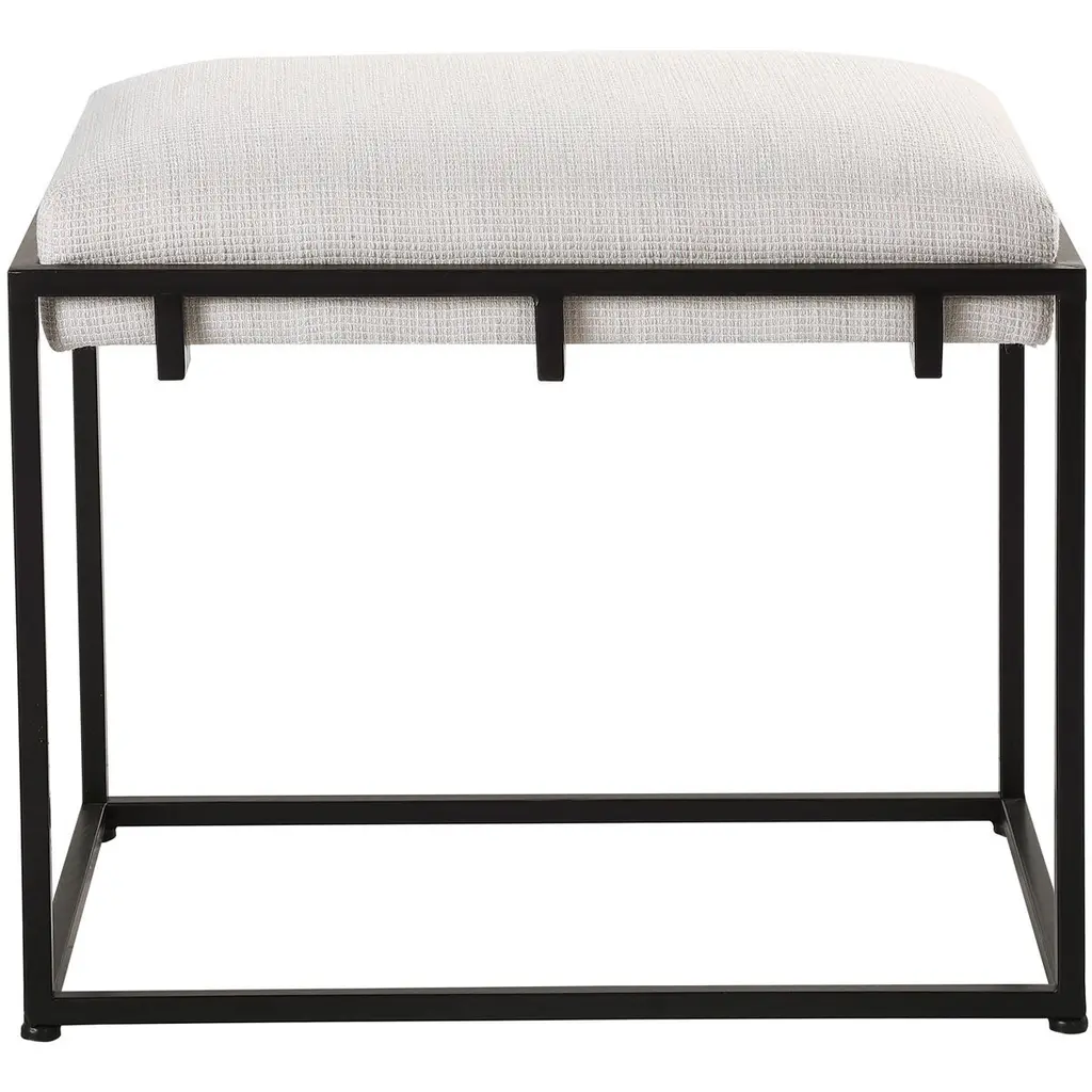 Uttermost's Paradox Accent Bench features a fusion of top-tier craftsmanship and distinctive high-style design. This particular bench's Classic and sophisticated color combination showcase a sleek matte black iron frame harmoniously paired with a plush upholstered seat in crisp white waffle-textured polyester. Elevate your interior with this timeless and stylish addition, where premium quality materials meet impeccable design, creating a statement piece that complements any decor.