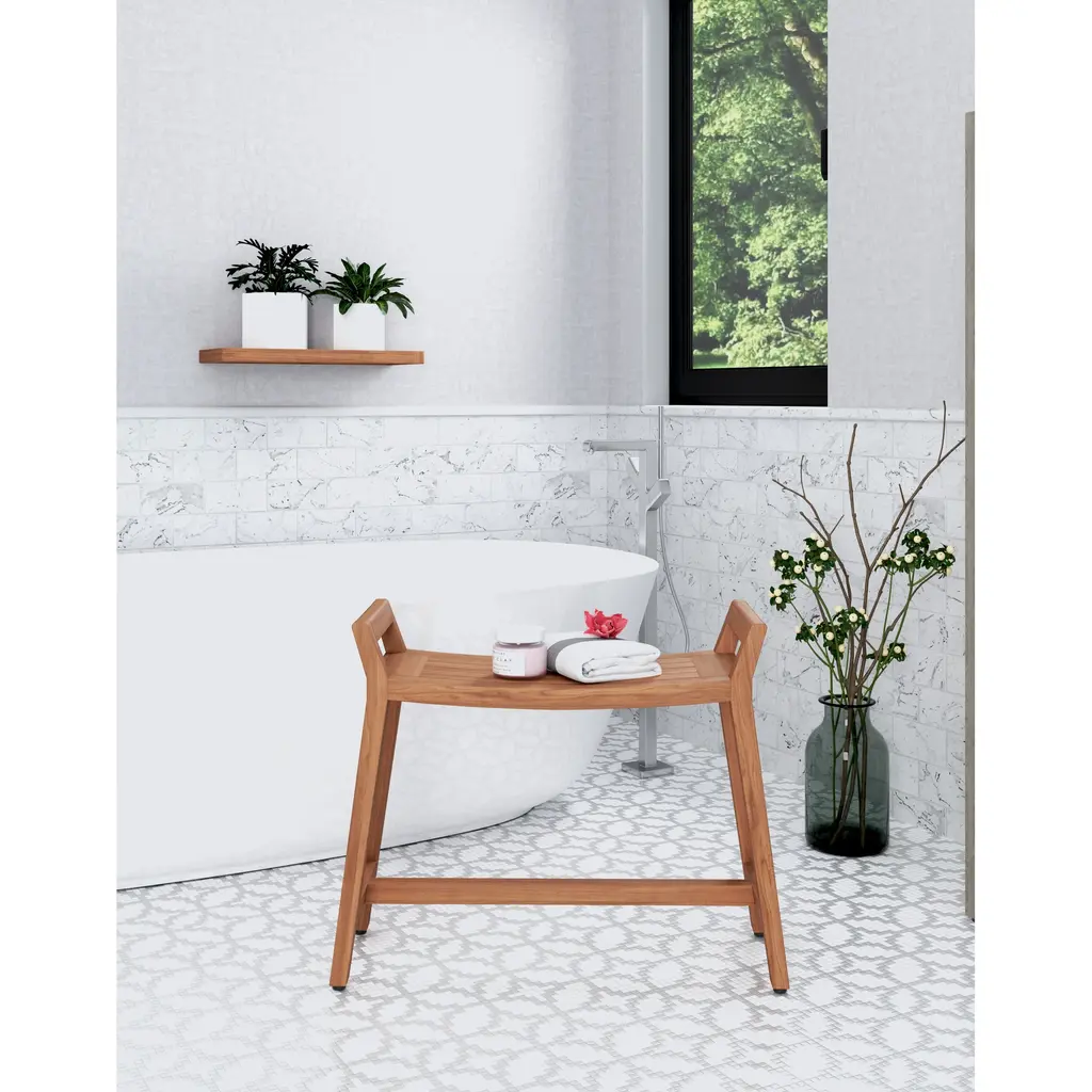 Patented Asia Ascend Teak Shower Bench - Teak Oil - 24" Wide, 21" Tall
