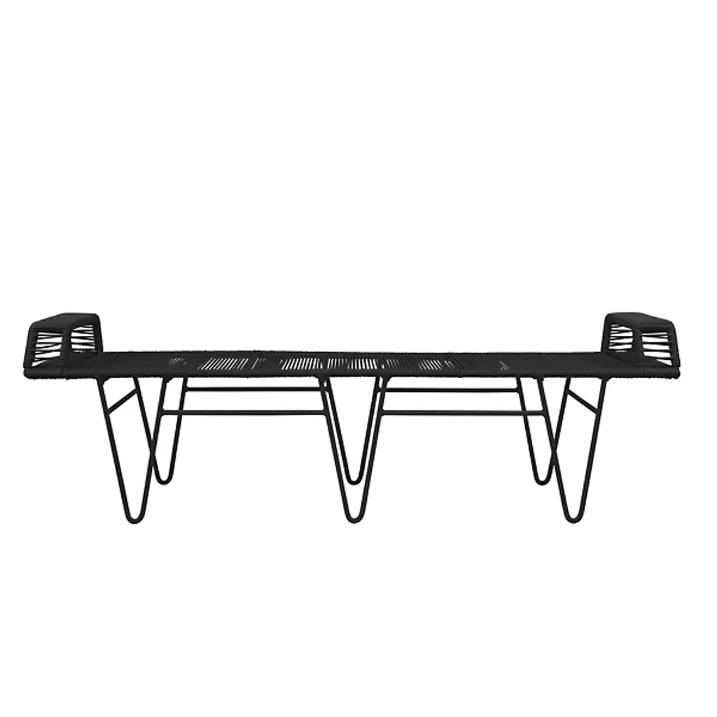 A statement-making piece with no shortage of style. Taking cues from traditional Mexican craftsmanship, the Pelopin Bench from Innit Designs makes a splash inside or outside as comfortable seating for three. It draws your eyes with a snazzy silhouette emphasized by a sequence of tapered legs. Made in steel, the angular frame delivers a refined look and a sturdy base. Over the top, artisans hand wrap cords of UV-resistant vinyl to create a comfortable seating experience emphasized by a breathable feel. Low-profile armrests flanking the seat serve as a final touch showcasing the fine vinyl pattern.