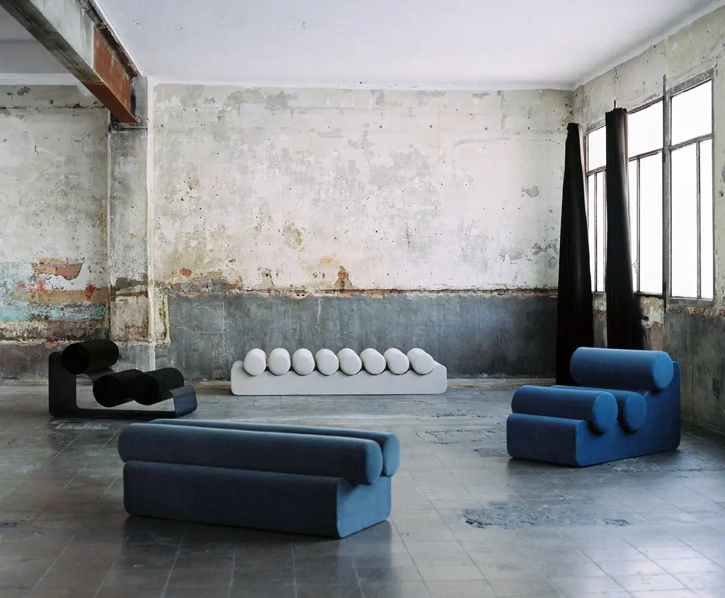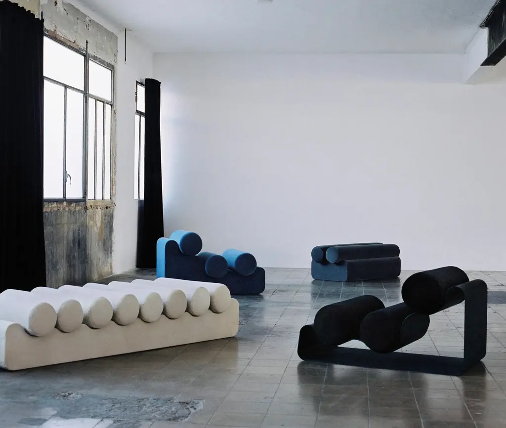 Pepino bench by Owl Dimensions: L 140 x W 60 x H 46 cm Materials: Plywood base, upholstered La Pepino is a collection of only seating, which consists of the repetition of cylindrical cushions, supported by an organically shaped base. Every piece comes entirely upholstered in customizable fabric, and plays with the different points of contact between cushion and body. All products are customizable. Each of our designs is handmade in our workshop, using high-quality materials from local suppliers.