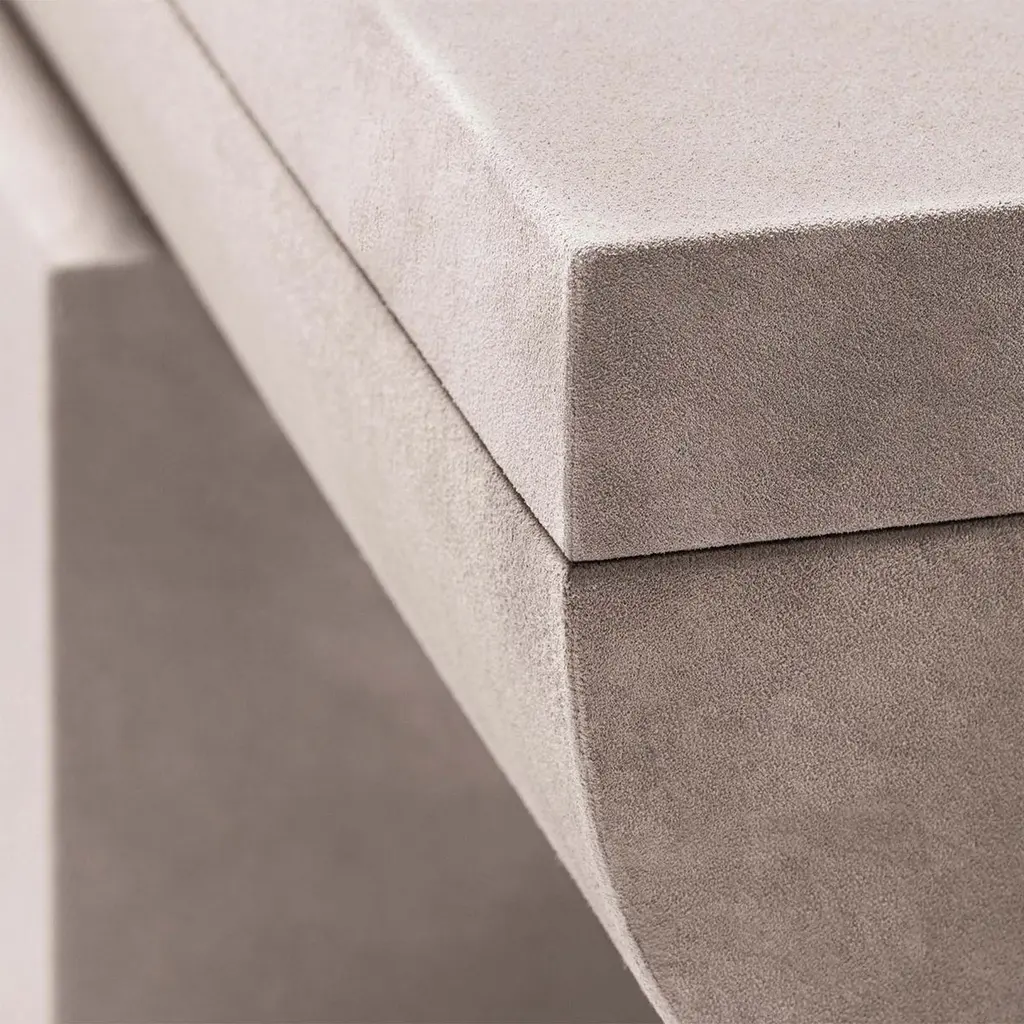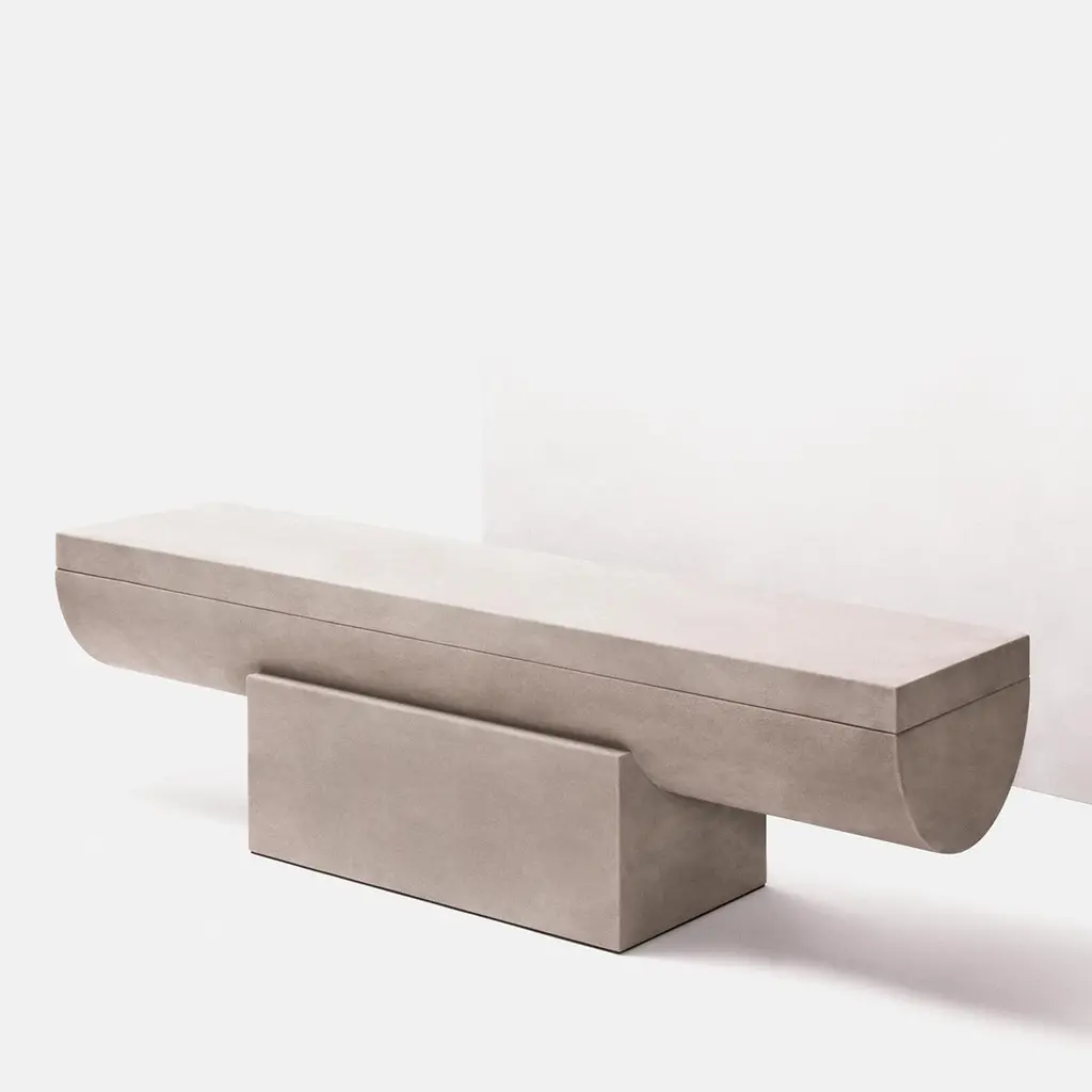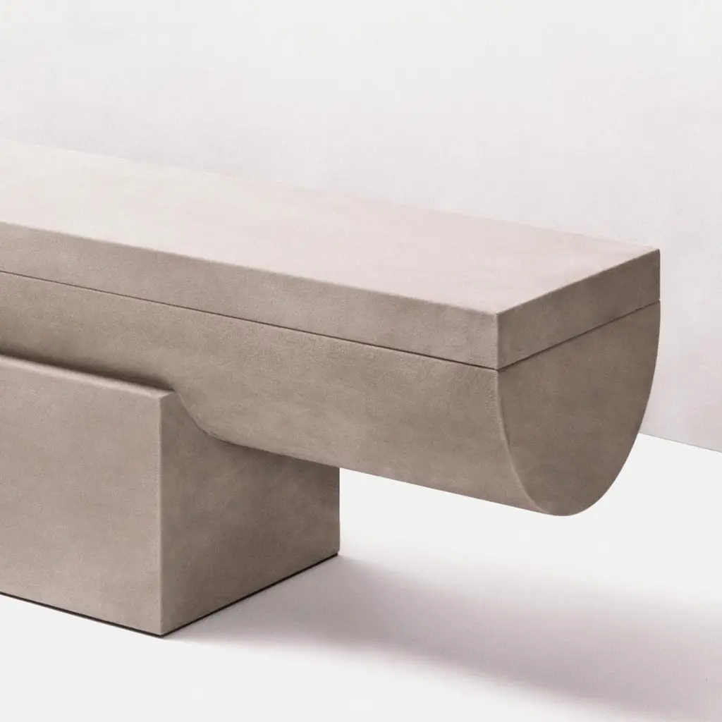 Bench Pherson with solid wood structure, covered with grey italian suede leather.Also available in other suede colors on request.