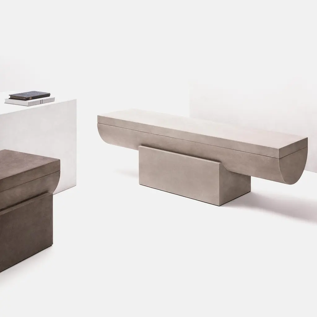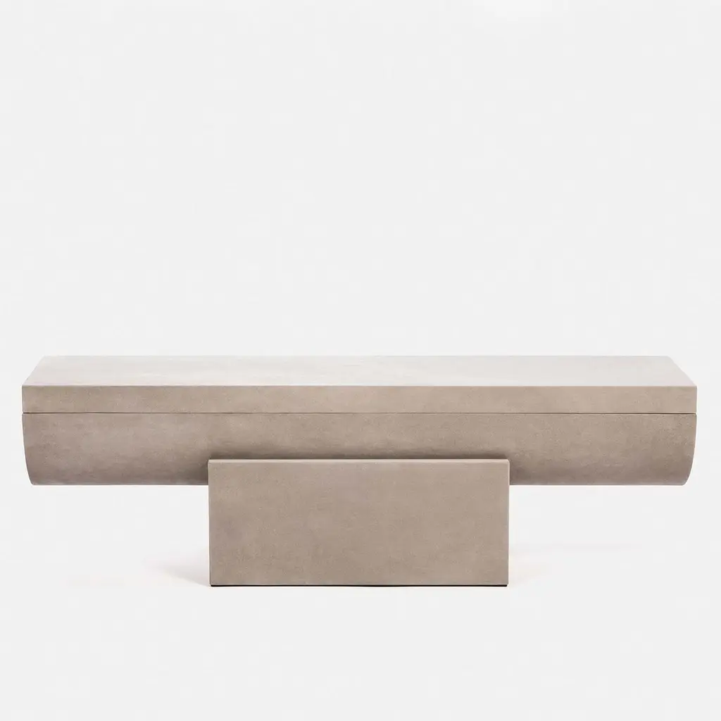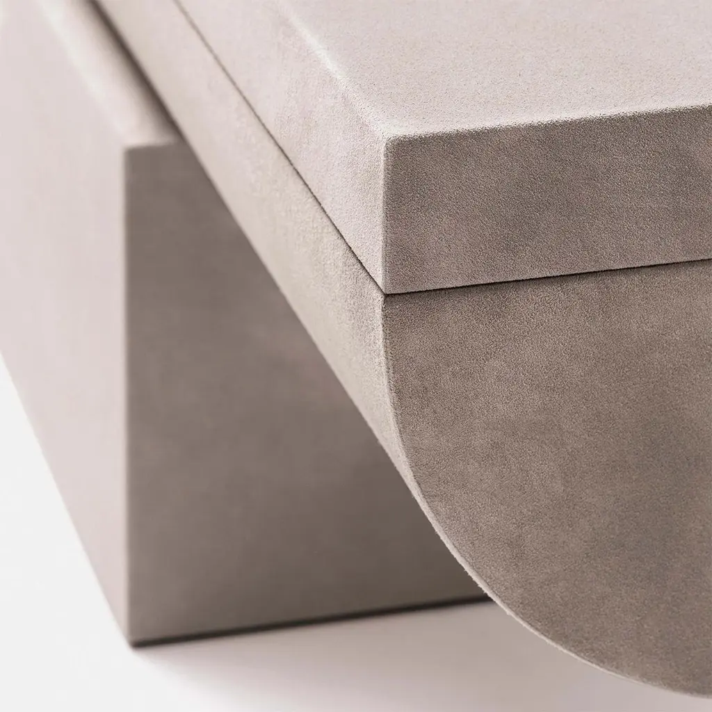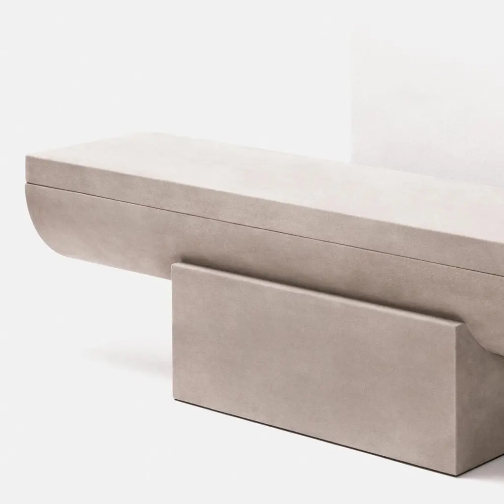 Bench Pherson with solid wood structure, covered with grey italian suede leather.Also available in other suede colors on request.