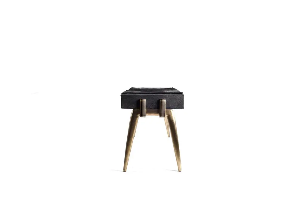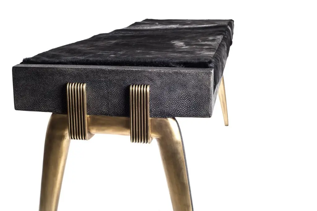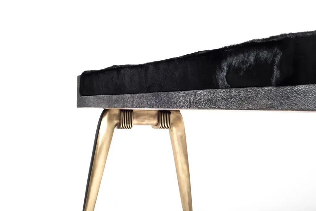 Pianist Bench In Coal Black Shagreen And Bronze-Patina Brass By R&y Augousti