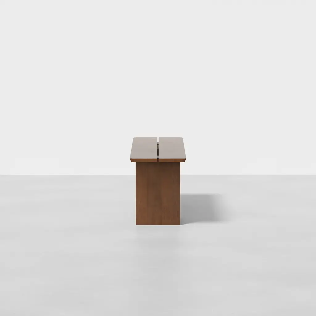 Versatile, streamlined, and crafted for durability, the Pillar Bench embodies modern, multi-use design. With a geometric silhouette and refined architectural lines, the Pillar Bench provides ideal end-of-bed, entryway, or living room seating. Crafted from 100% solid, upcycled wood for a strong, sturdy foundation.