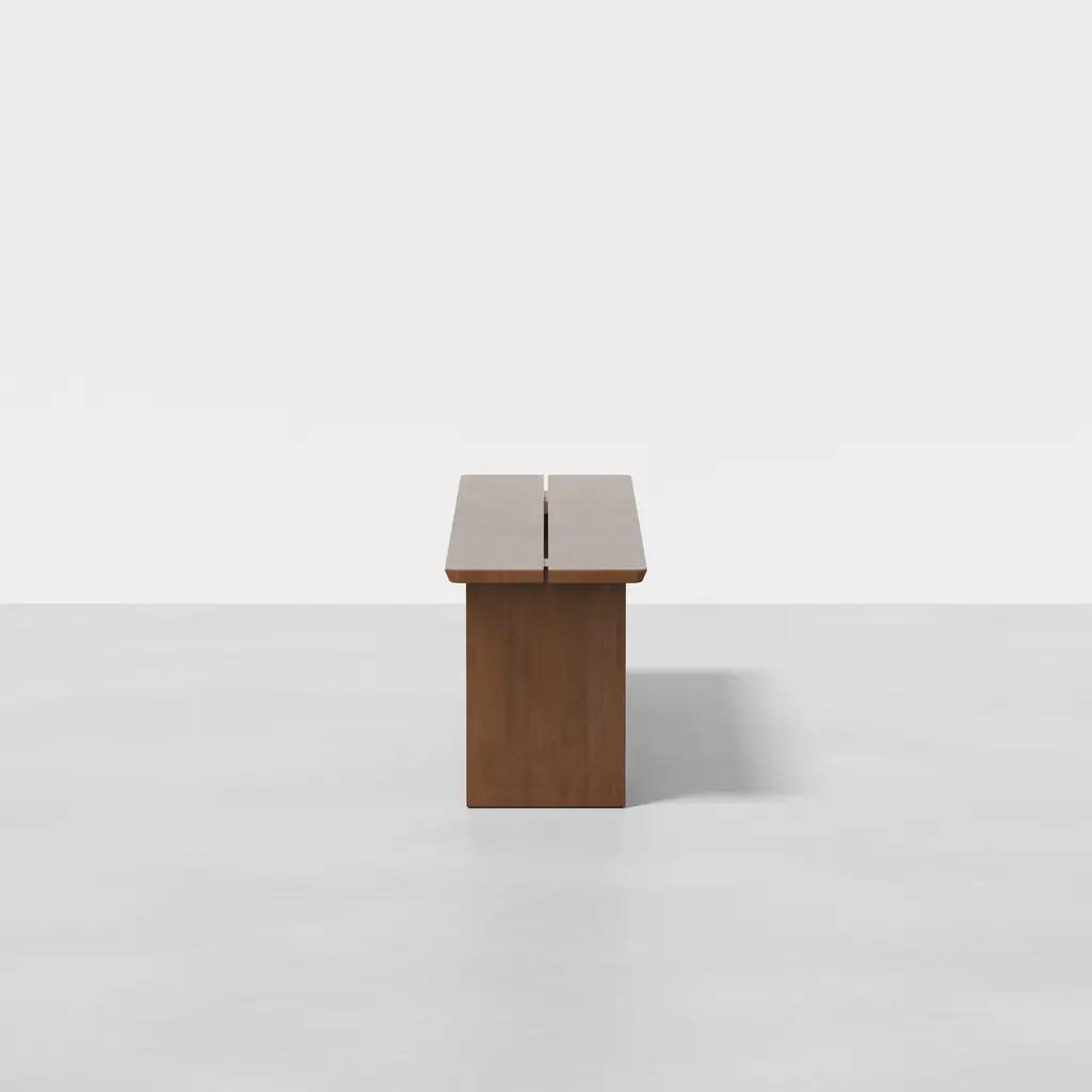 Versatile, streamlined, and crafted for durability, the Pillar Bench embodies modern, multi-use design. With a geometric silhouette and refined architectural lines, the Pillar Bench provides ideal end-of-bed, entryway, or living room seating. Crafted from 100% solid, upcycled wood for a strong, sturdy foundation.