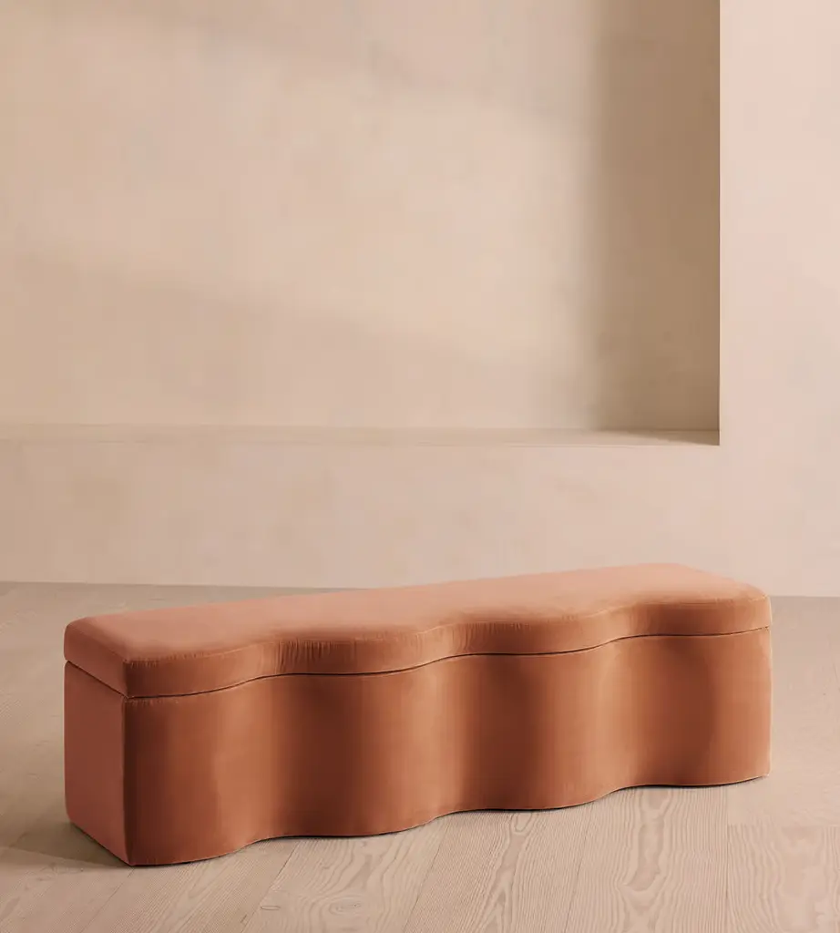 Plain Cognac Velvet Bench By Lorenza Bozzoli