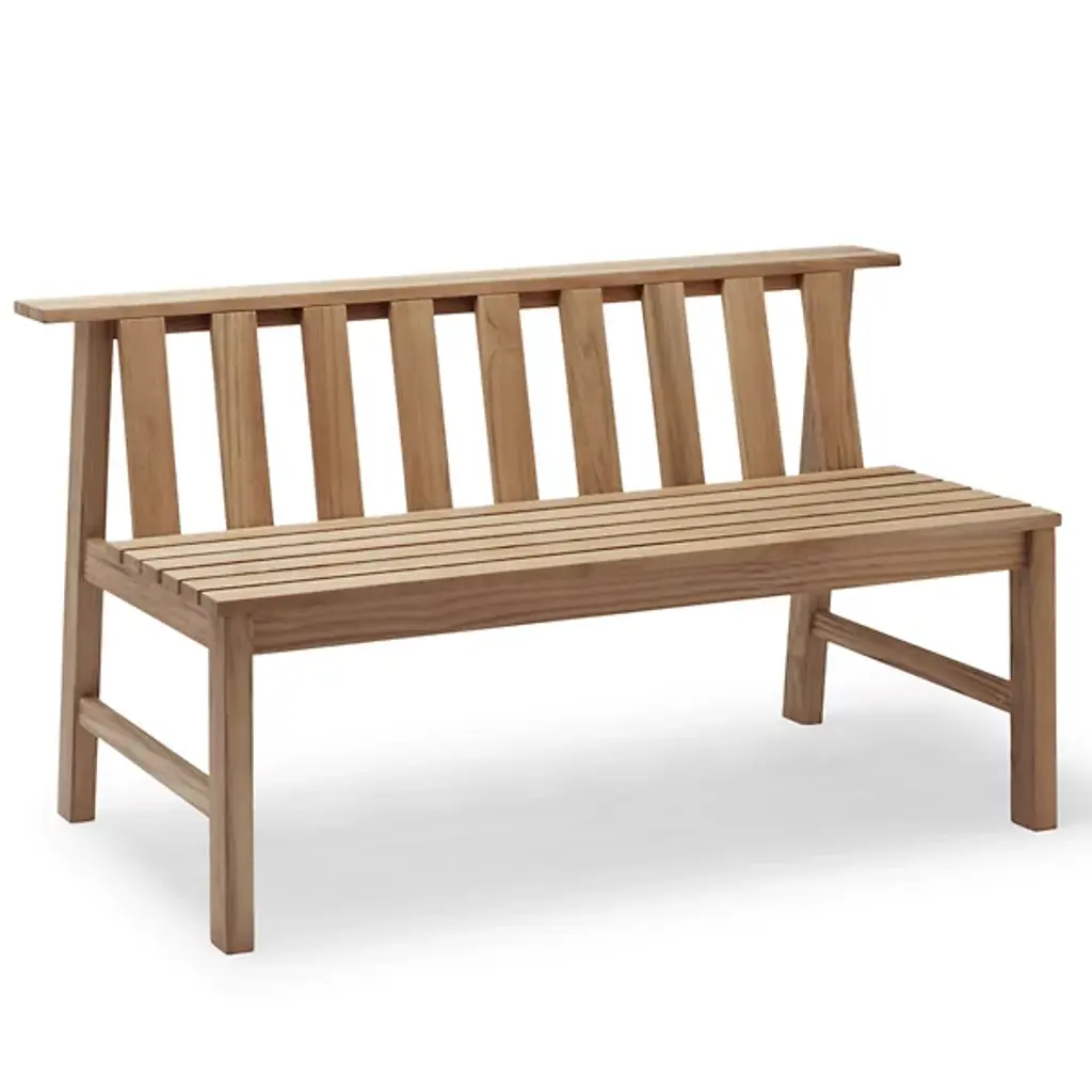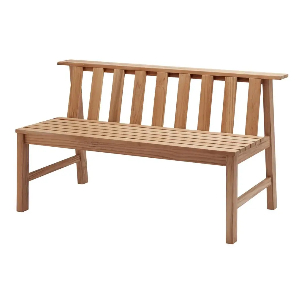 Simple, modern, and a touch playful, the Plank Bench (2018) is an inviting addition to an outdoor patio, deck, garden, or yard. The wide horizontal planks that form the backrest can hold anything from a glass of wine or a book to a portable lantern as daylight fades. The bench was designed by Paris-born, Copenhagen-based designer Aurelien Barbry, whose elegant, expressive designs often encourage interaction. Crafted from solid teak, the bench will develop a soft-gray patina if left to age naturally outdoors. Made in Vietnam.