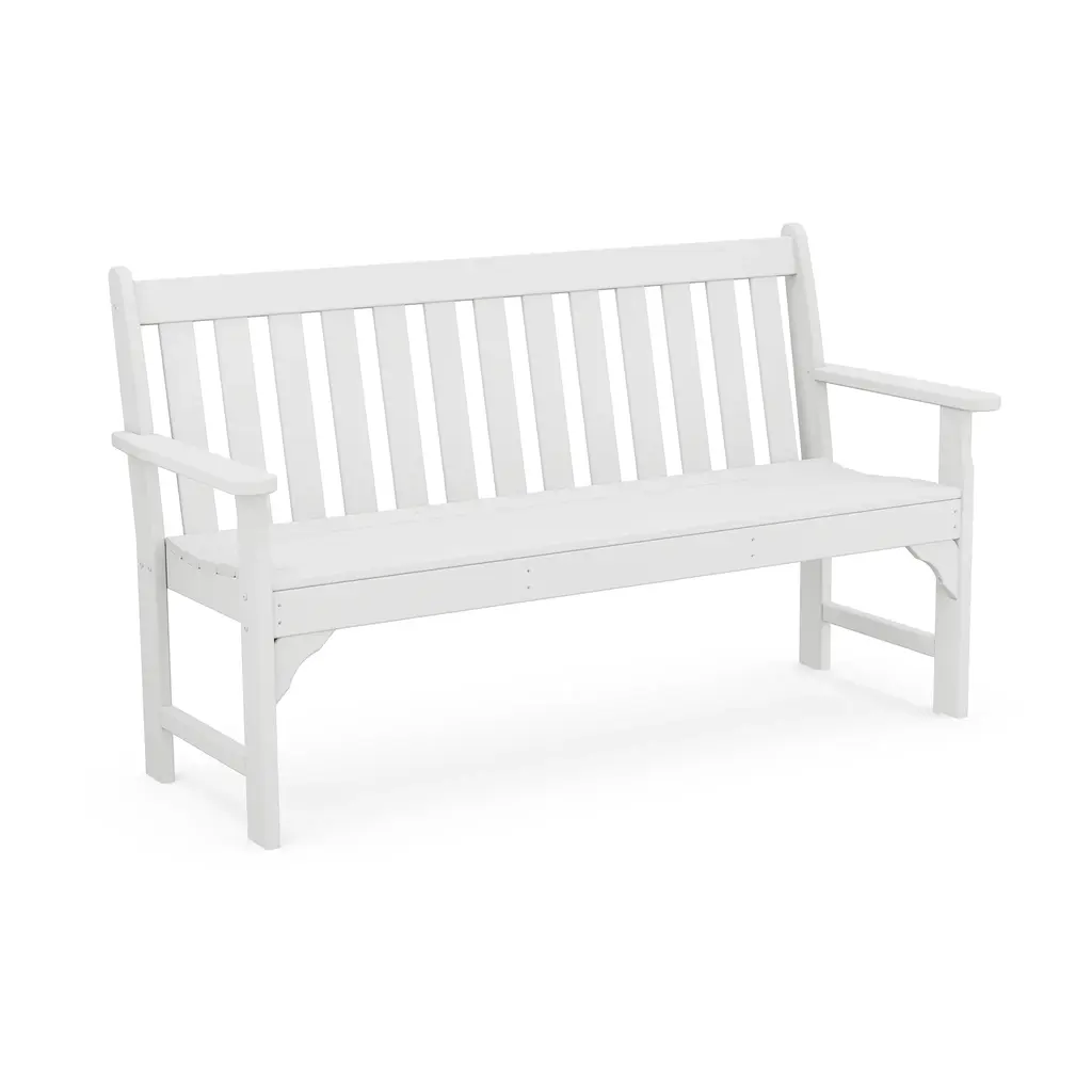 Our Vineyard 60" Garden Bench is made from high quality low-maintenance recycled plastic. Get the look and beauty of traditional outdoor garden benches without the refinishing and upkeep. POLYWOOD® recycled plastic lumber combined with premium stainless steel hardware makes our Vineyard 60" (5 foot long) Garden Bench the perfect choice for your lawn, garden, park or patio. Our POLYWOOD® is ultra-durable, weather-resistant and affordable outdoor garden furniture. No need to store this bench during winter months - leave it outside!
