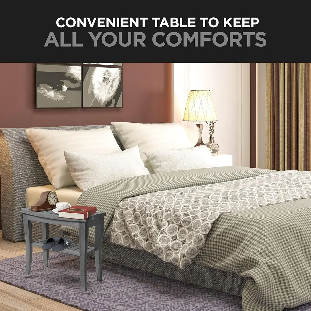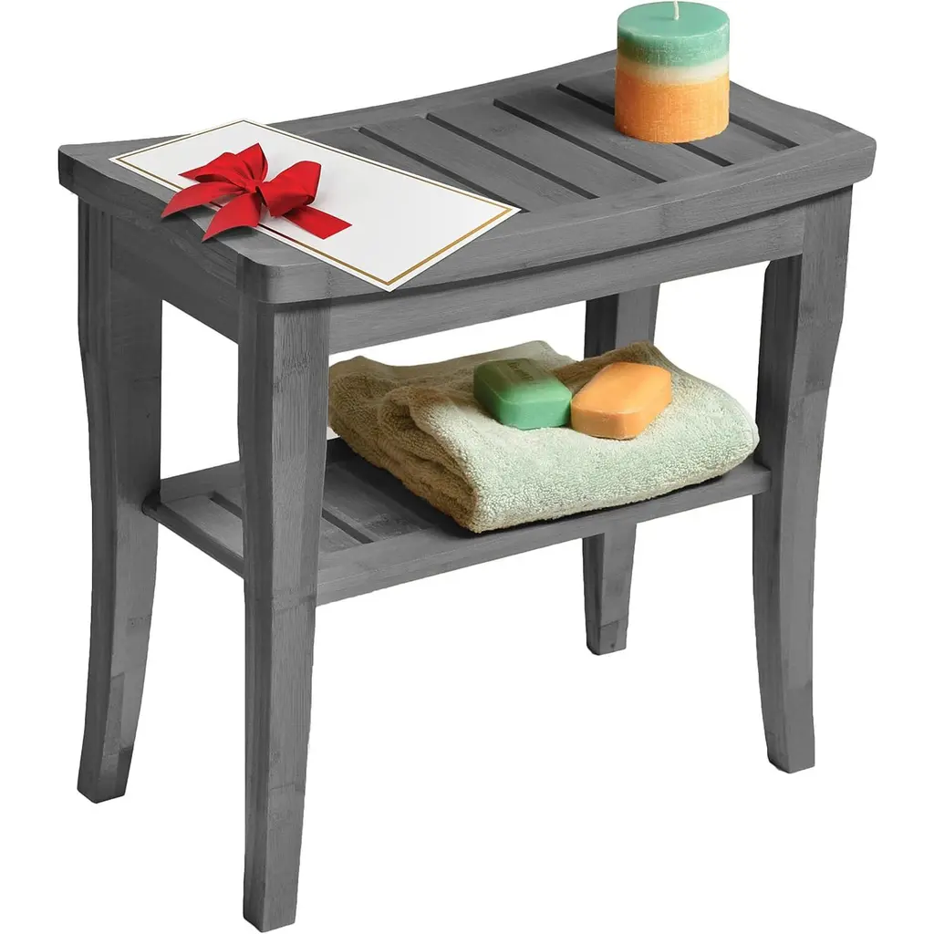 Easy to clean, simply wipe clean with a damp clean cloth. Shelf Dimensions: 15 7/8"W x 10 1/8"D.. Dimensions: 20"W x 13.5"D x 17.5"H/WEIGHT CAPACITY 250. Can be used indoor or outdoor - meditiation bench, spa, shower, bath, deck.. Teak is almost impervious to the elements (some weathering will occur). Specificationss: Color: Weathered Gray, Natural Product Dimensions: 13.75"D x 20"W x 17"H Item Weight: 10.4 pounds Leg Style: Tapered Style: Old World Size: Large Seat Height: 17 Inches Maximum Weight Recommendation: 250 Pounds Product Care Instructions: Wipe with Dry Cloth