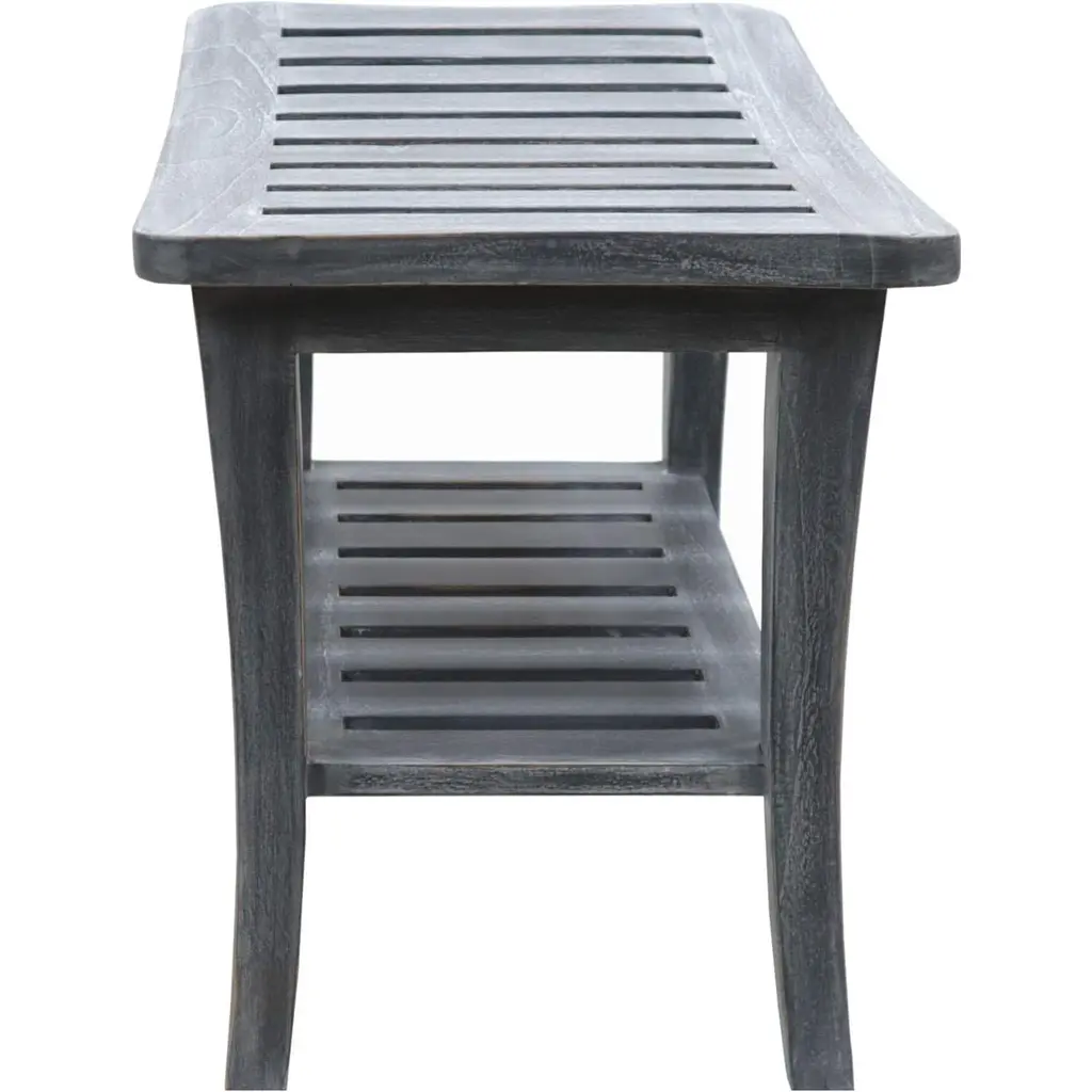 Premium Grade Teak Spa Or Vanity Seat Bench, Large - Weathered Gray