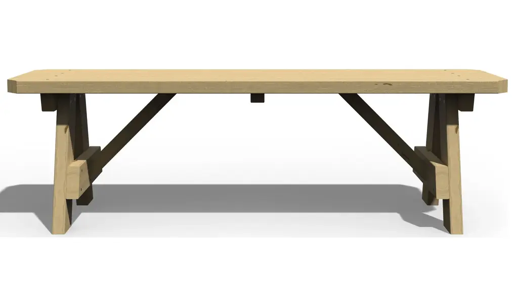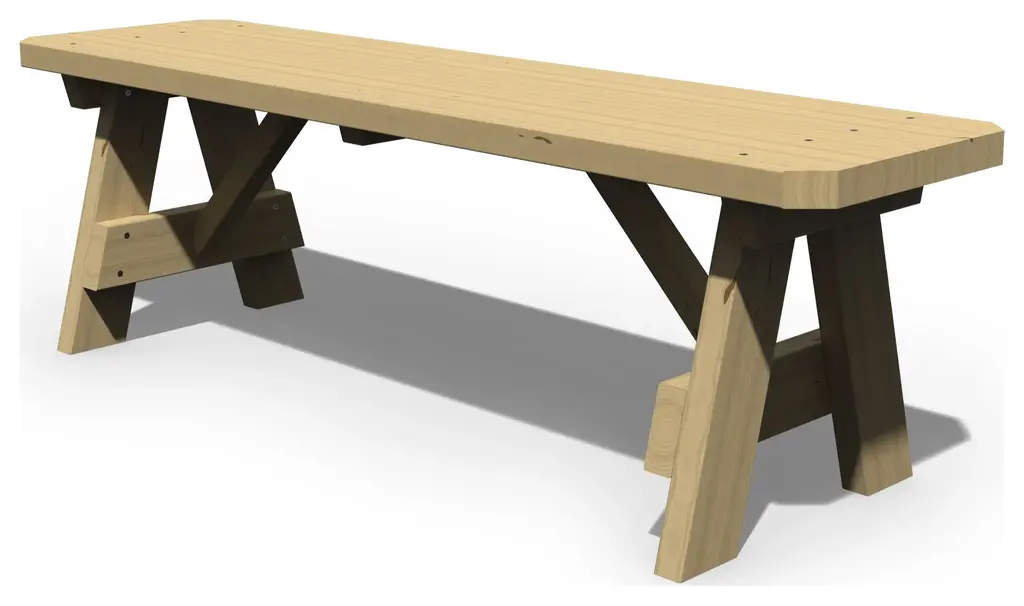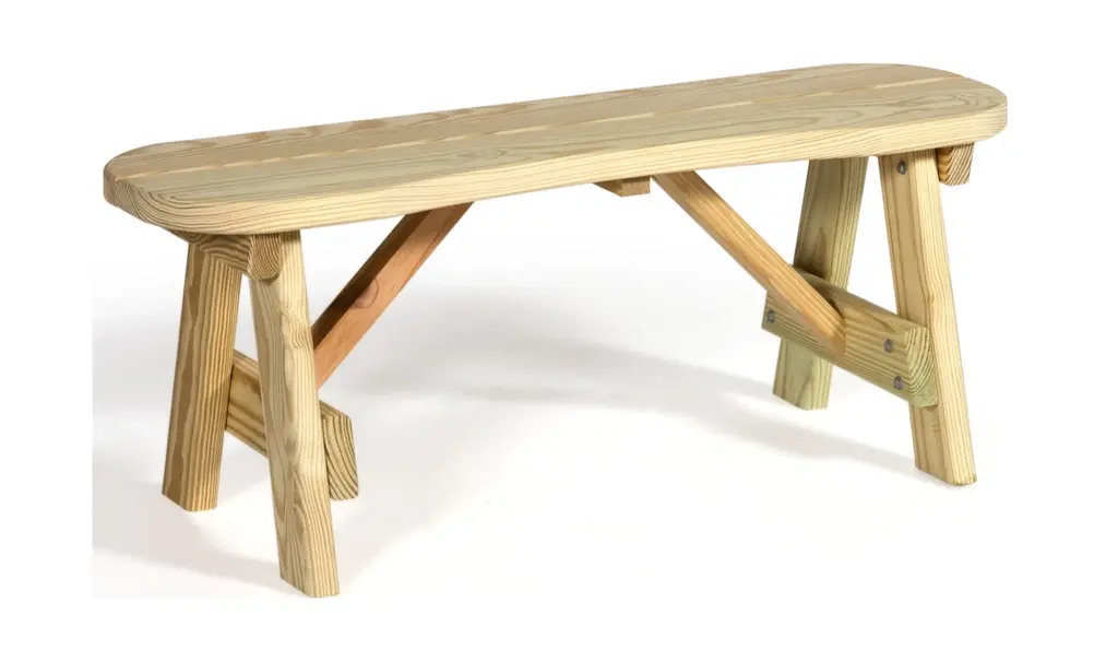 This pressure-treated wood bench makes a great addition to your porch, garden, or pulled up next to your picnic table.Wood is a natural, earth-friendly product. Known as one of the most robust, versatile wood species, Southern Yellow Pine is the wood used to manufacture our Outdoor Furniture. The quality and availability of Southern Yellow Pine are virtually unmatched.Amish made in the USAOur treated wood uses non-arsenic based, environmentally safe preservatives.If ordering unfinished with plans to stain or paint, for best results this should be done within 30 days of receiving your product.If ordering painted or stained, your product should be resealed every 2 years with a quality water sealer of your choice.Digital colors may vary slightly from actual product colors