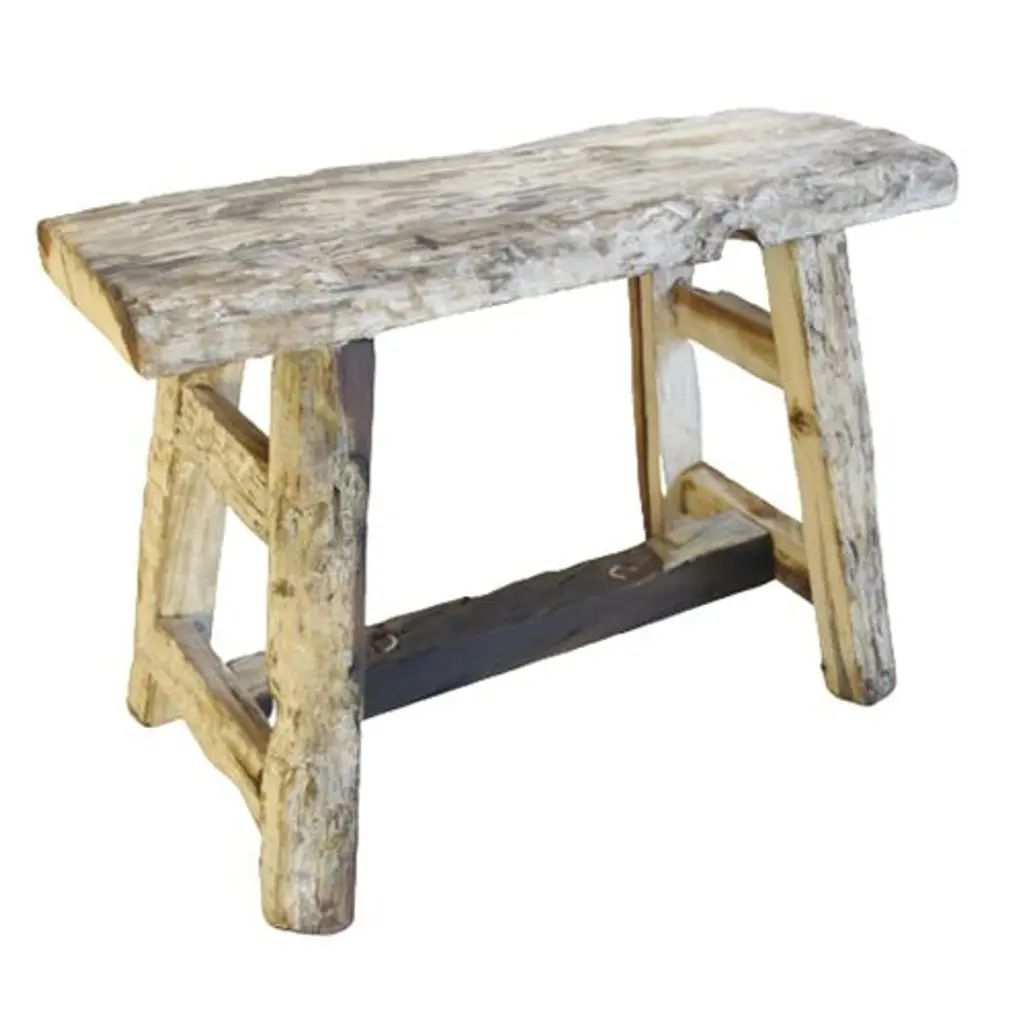 Vintage handmade primitive rustic country farmhouse accent bench with mortise and tenon construction. No maker's mark. Very good condition, wear consistent with age and use.
