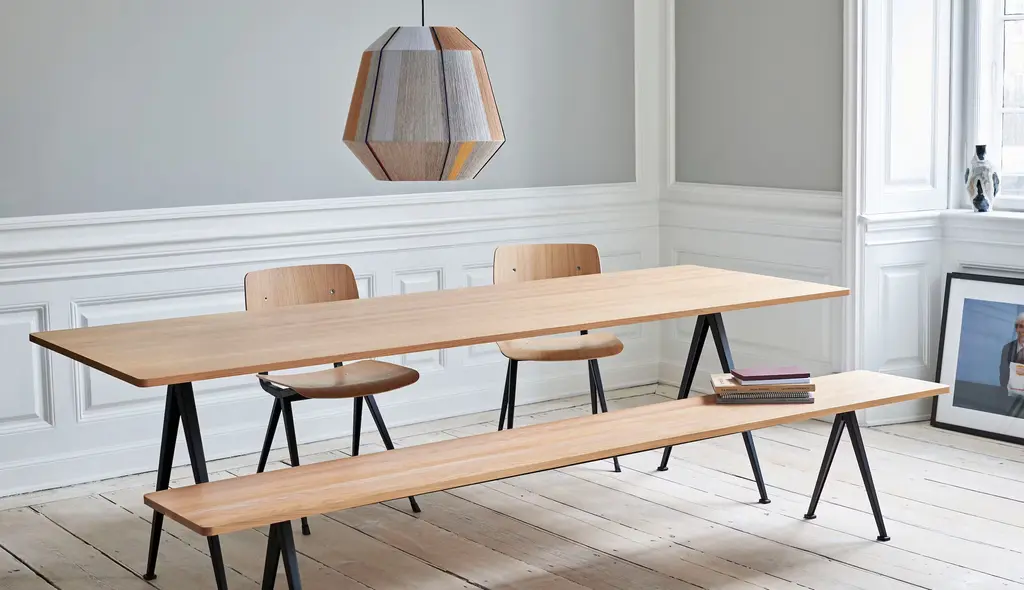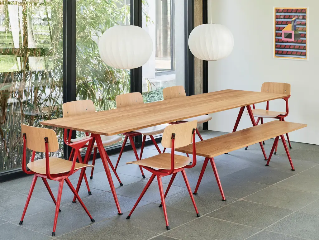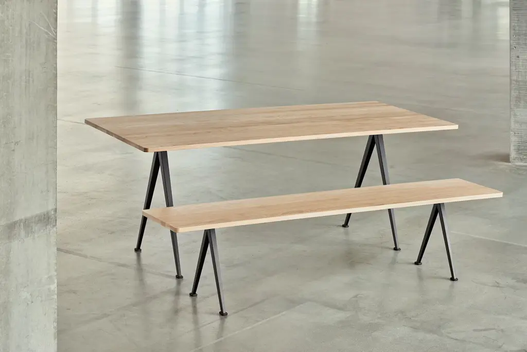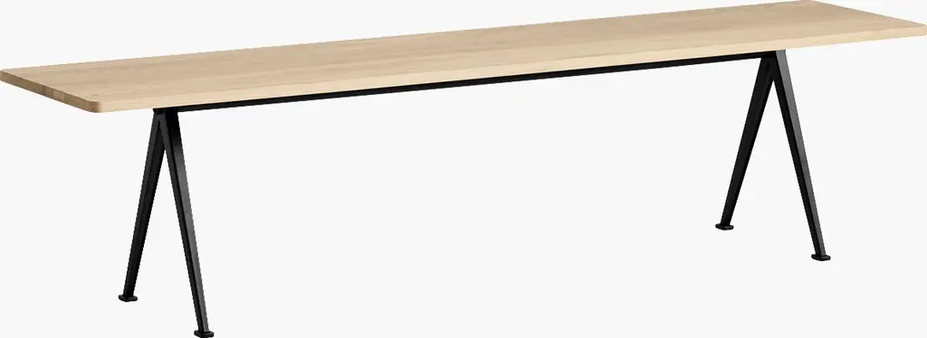 Originally designed by Wim Rietveld while working at Ahrend in the 1950s, the Pyramid Bench has been relaunched by HAY together with Ahrend. Functional, adaptable and strong, it's the last word in cutout sheet-steel construction, notable for its sparing use of materials and simplistic design - and for being light enough to move around. Assembly required.