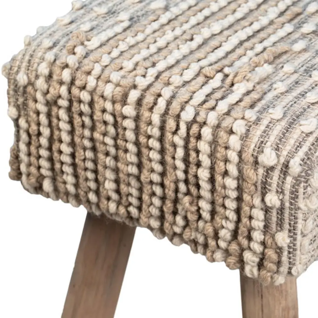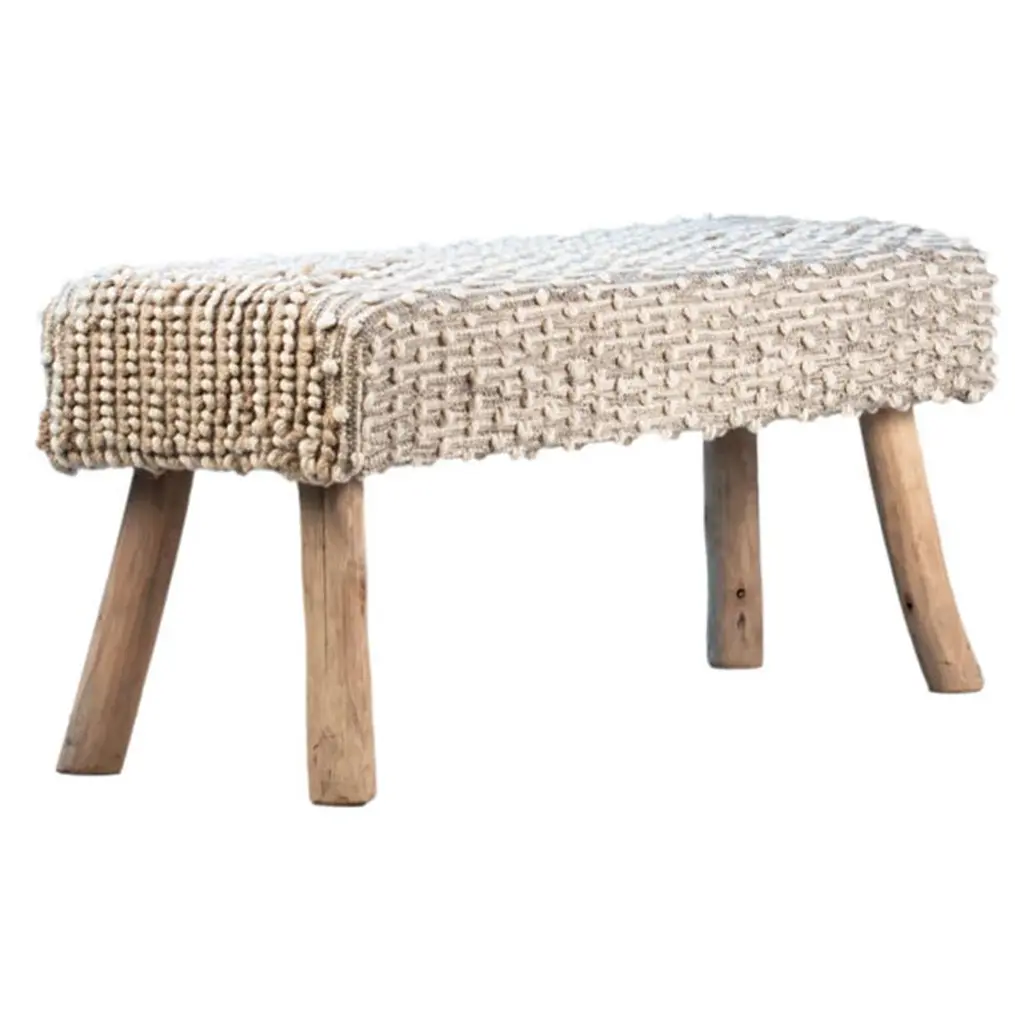Radda Rustic Lodge White Upholstered Wool Brown Wood Bench