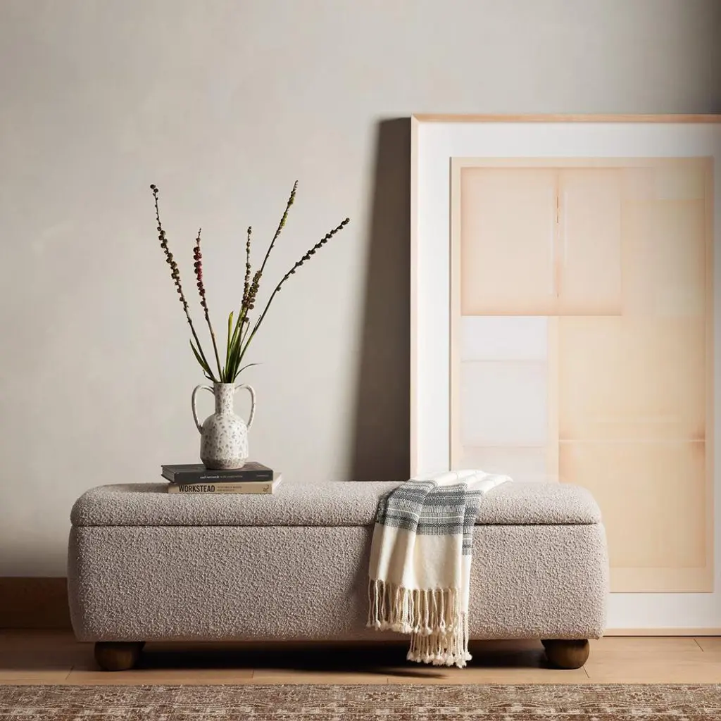 Ramon Modern Classic Beige Performance Boucle Storage Bench